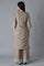 Festivities delve for contemporary attires with delightful hues, striking motifs and intricate detailing. This kurta set features a brown all-over mughal print kurta having zari embroidered yoke with round neckline and three-quarter sleeves. Well-matched with printed palazzos.
