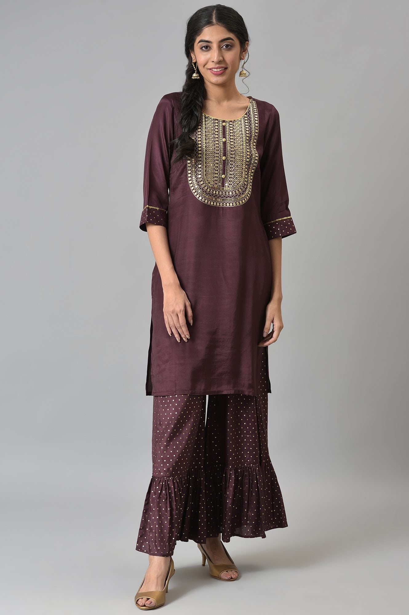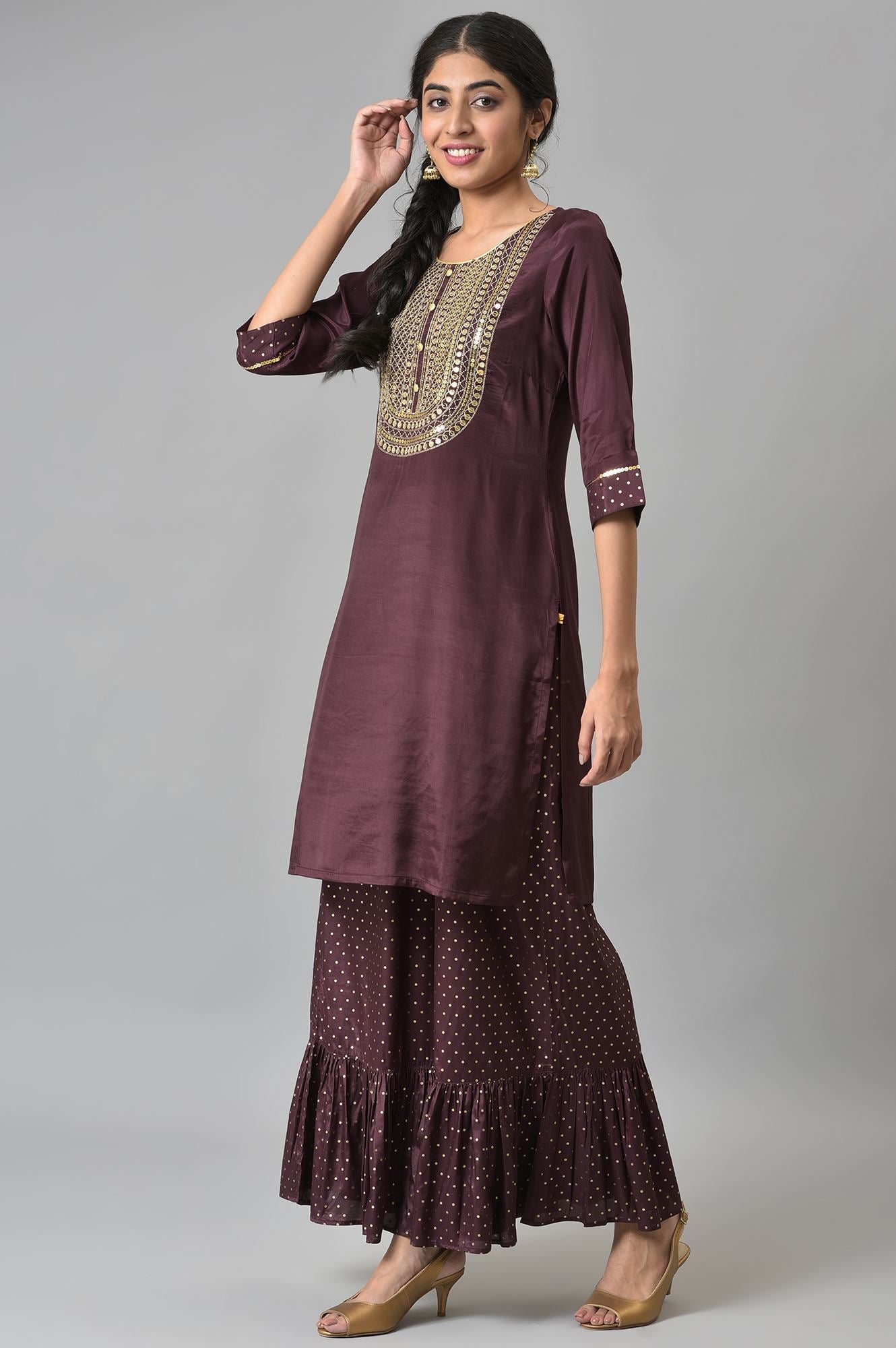 Brown Shantung LIVA kurta with Gathered Sharara