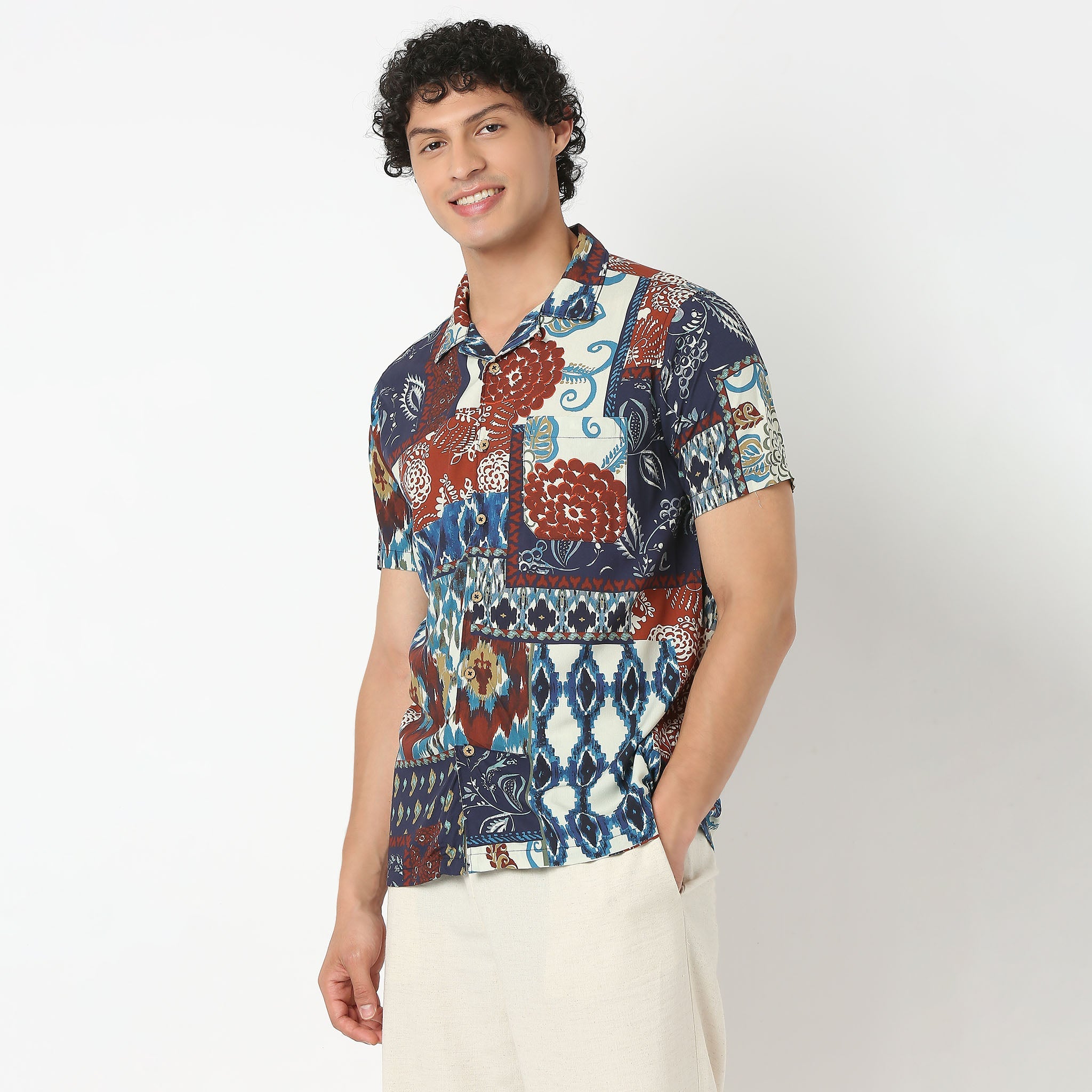 Camp Collar Half Sleeve Cuban Printed Shirt