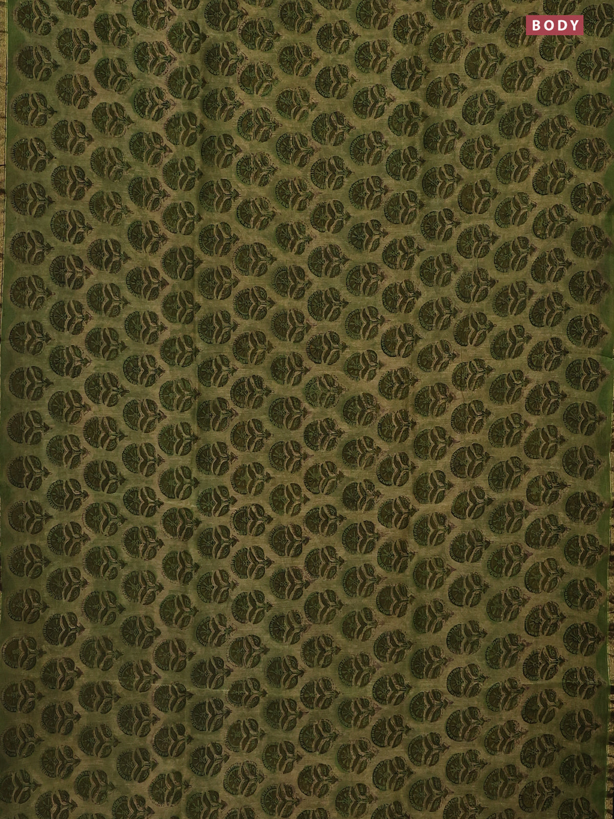 Chanderi bagru saree elaichi green and black with allover ajrakh butta prints and small zari woven border