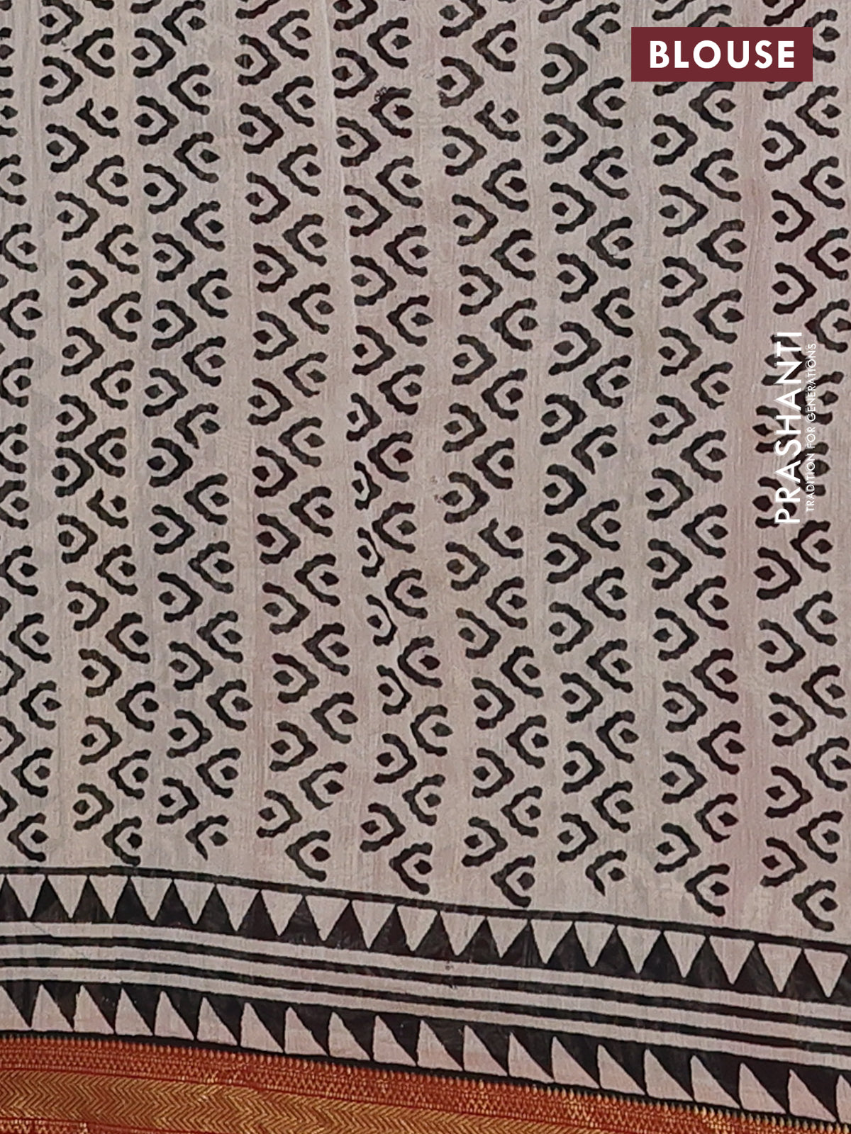 Chanderi bagru saree maroon and cream with allover prints and maheswari border