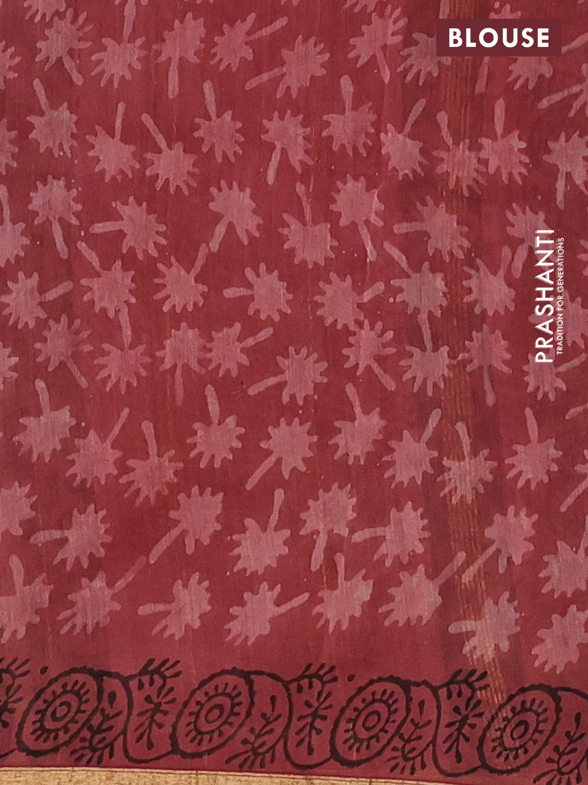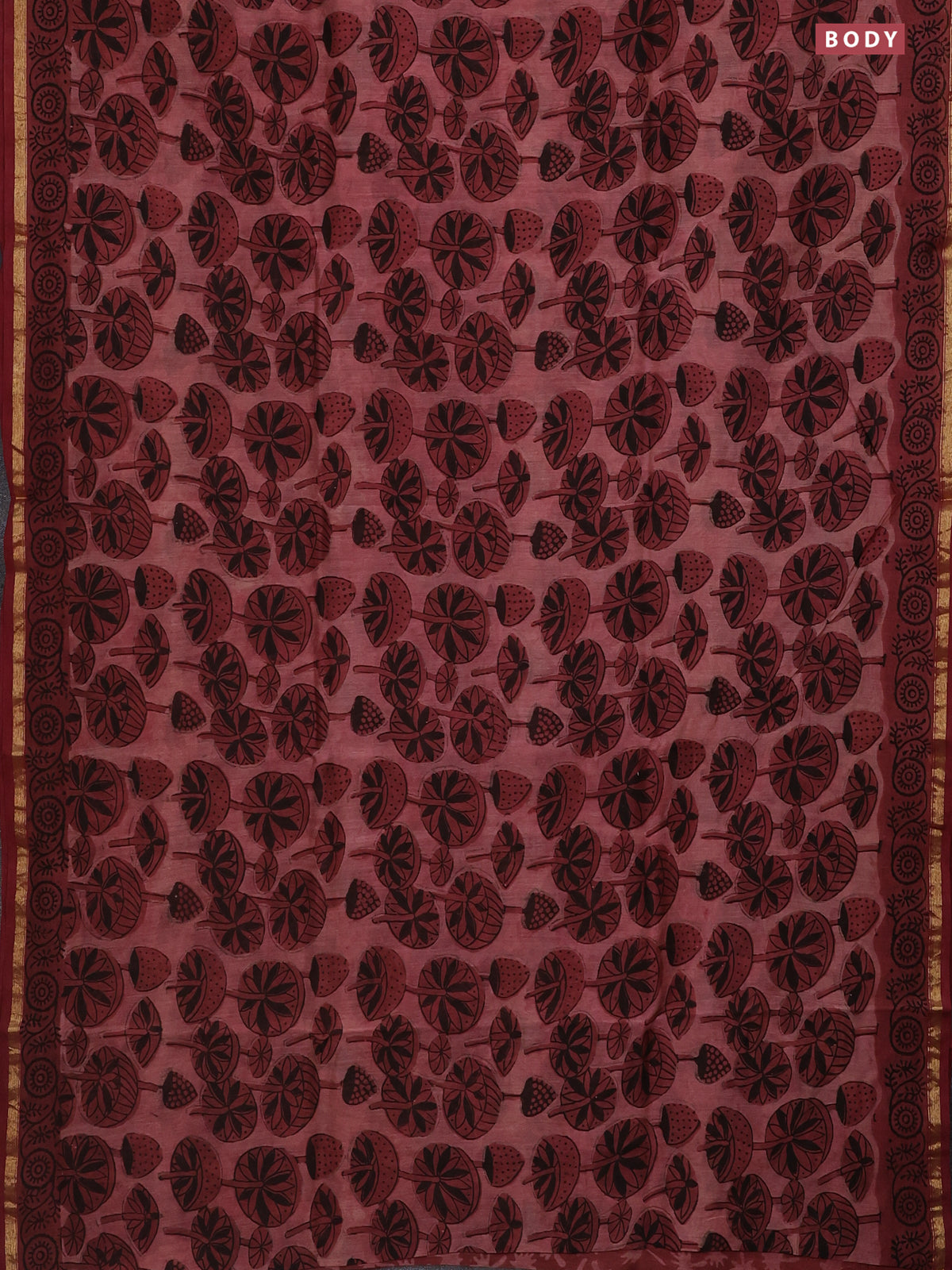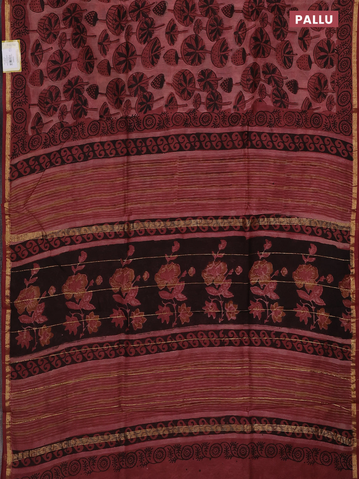 Chanderi bagru saree pastel maroon with allover prints and small zari woven border