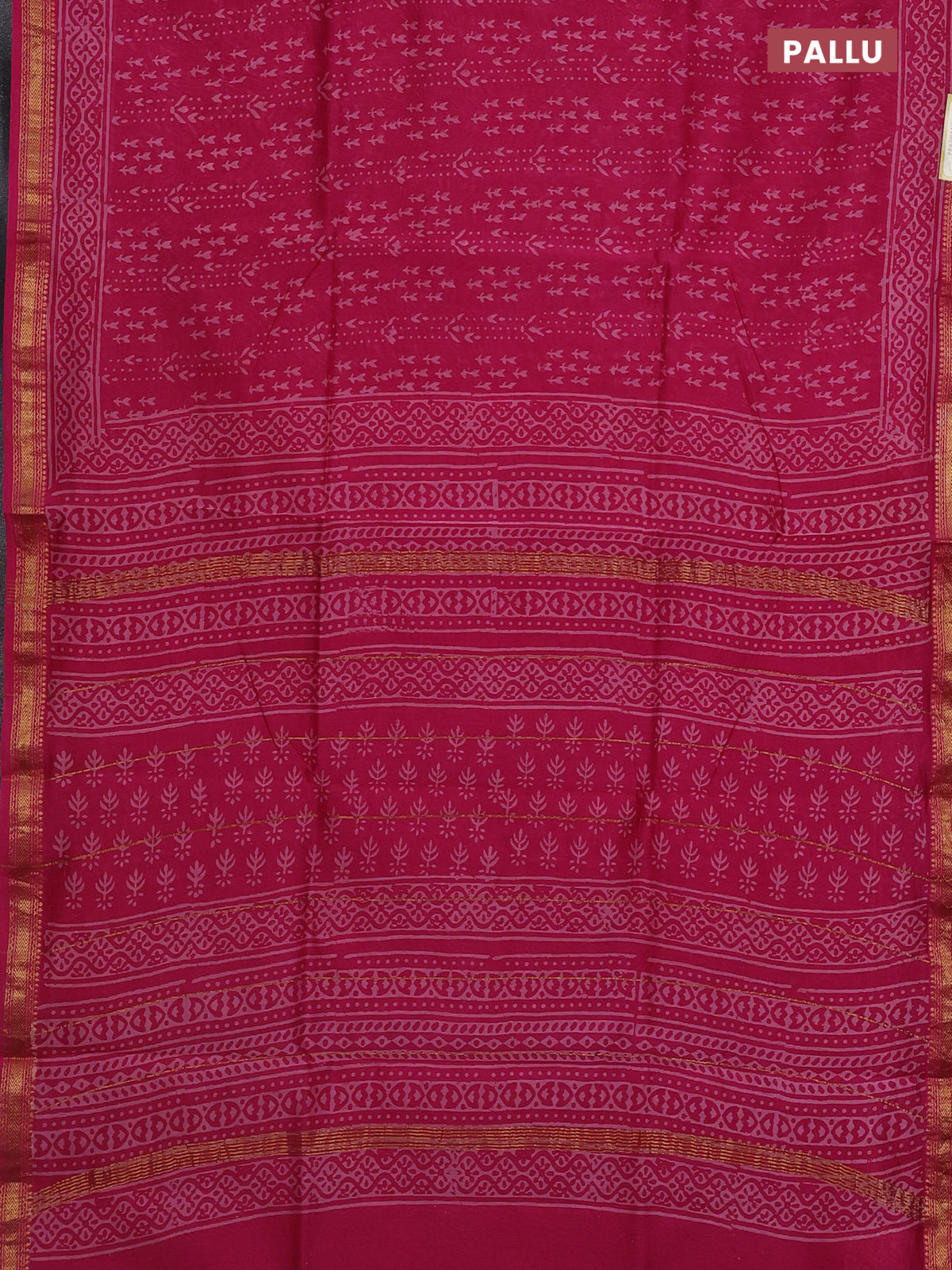 Chanderi bagru saree pink with allover prints and maheswari border