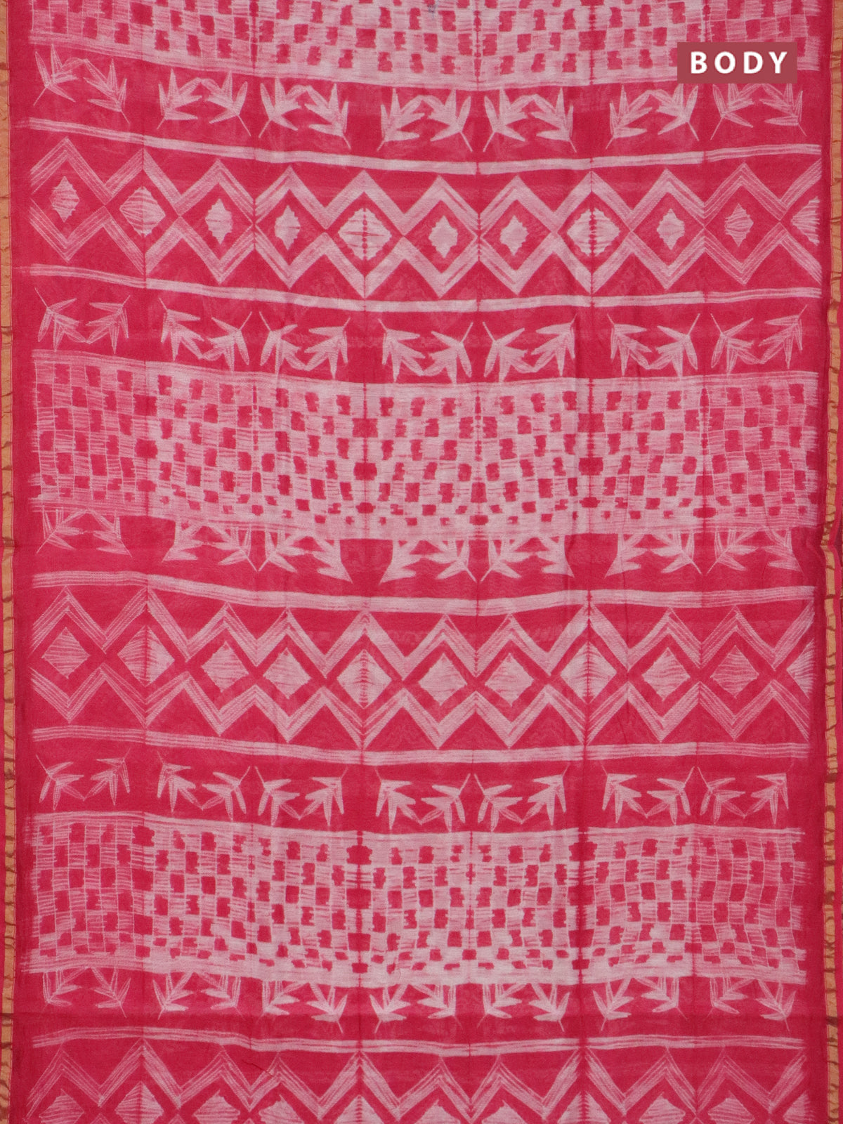Chanderi bagru saree pink with allover prints and small zari woven border