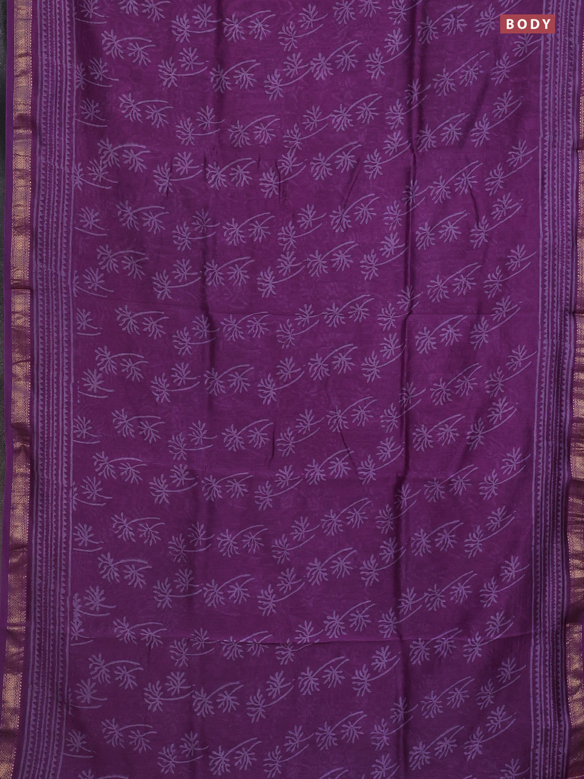 Chanderi bagru saree purple with allover prints and mageshwari border