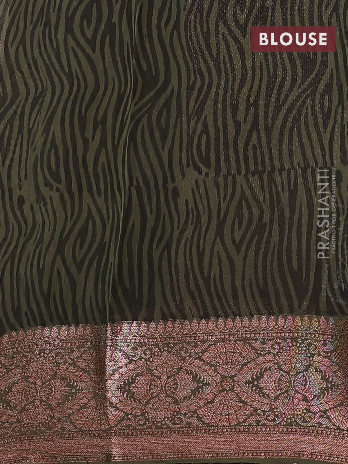 Chanderi silk cotton saree beige and sap green with allover prints and banarsi style border