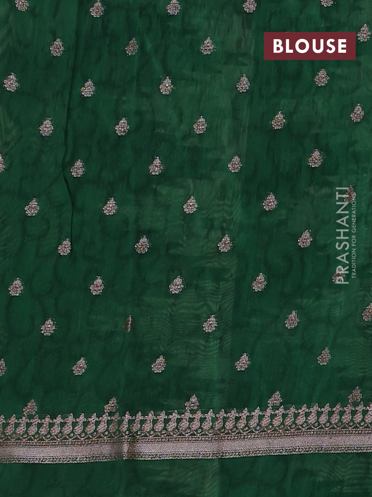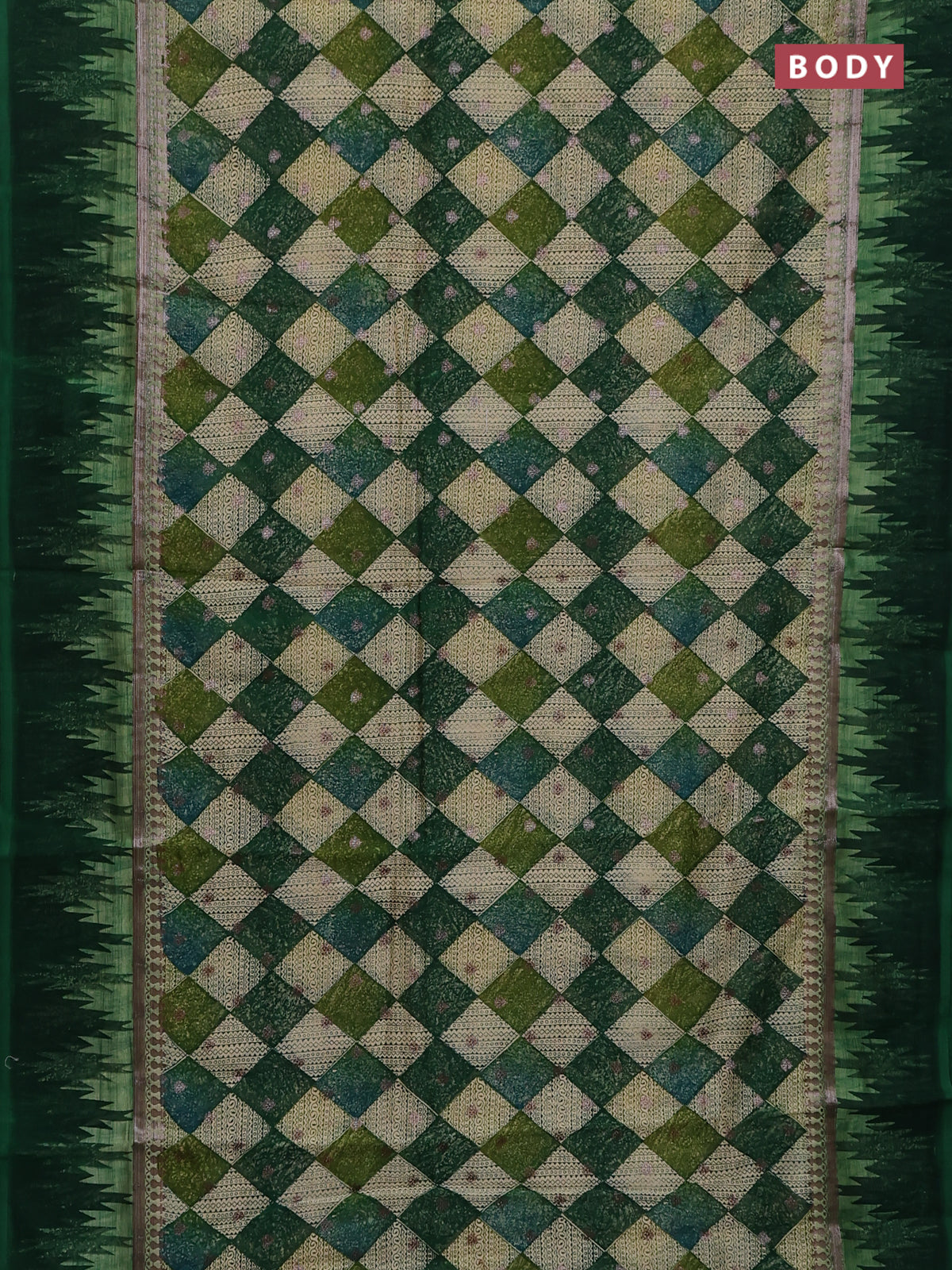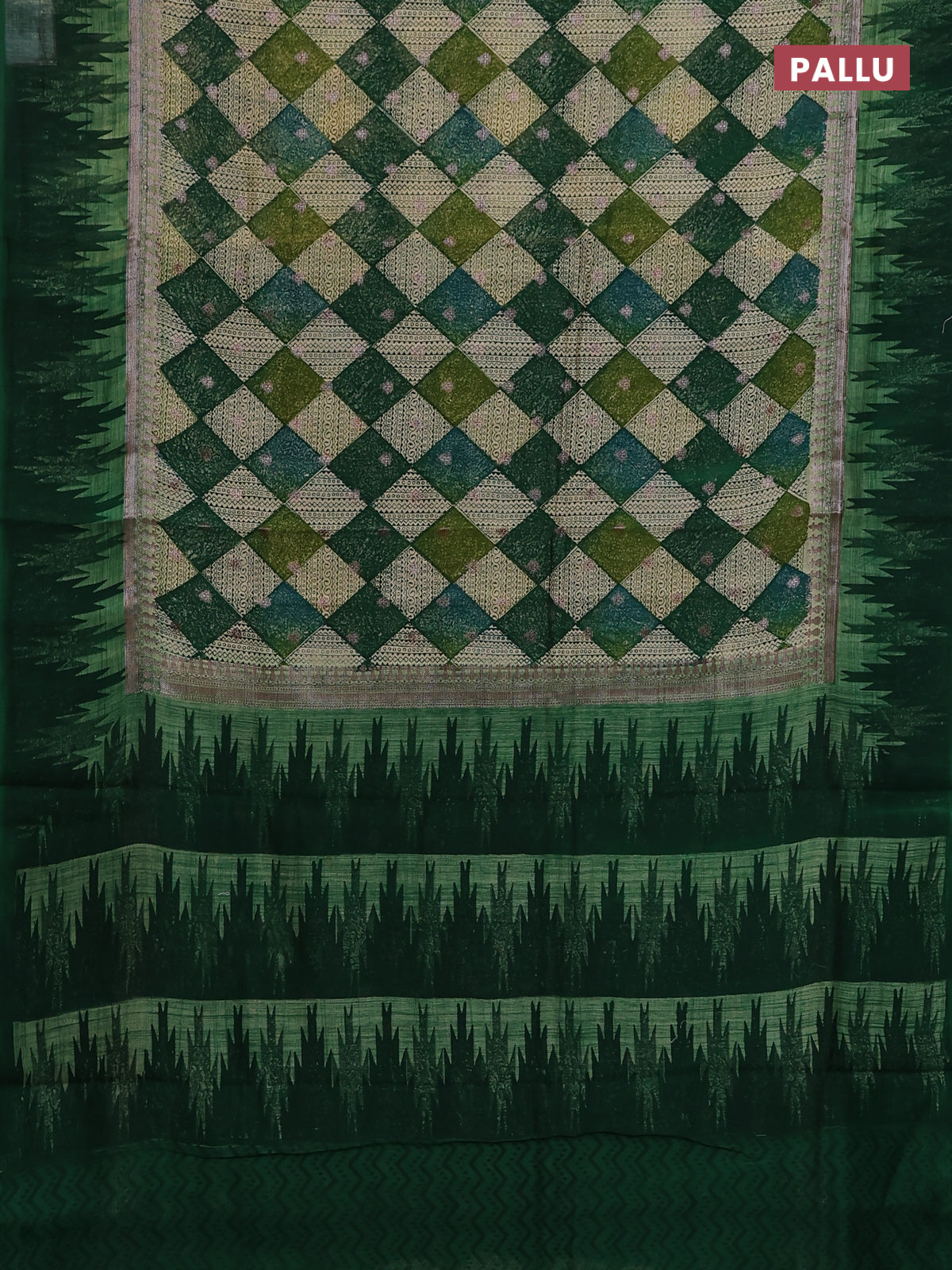 Chanderi silk cotton saree green with allover geometric prints & woven buttas and temple design border