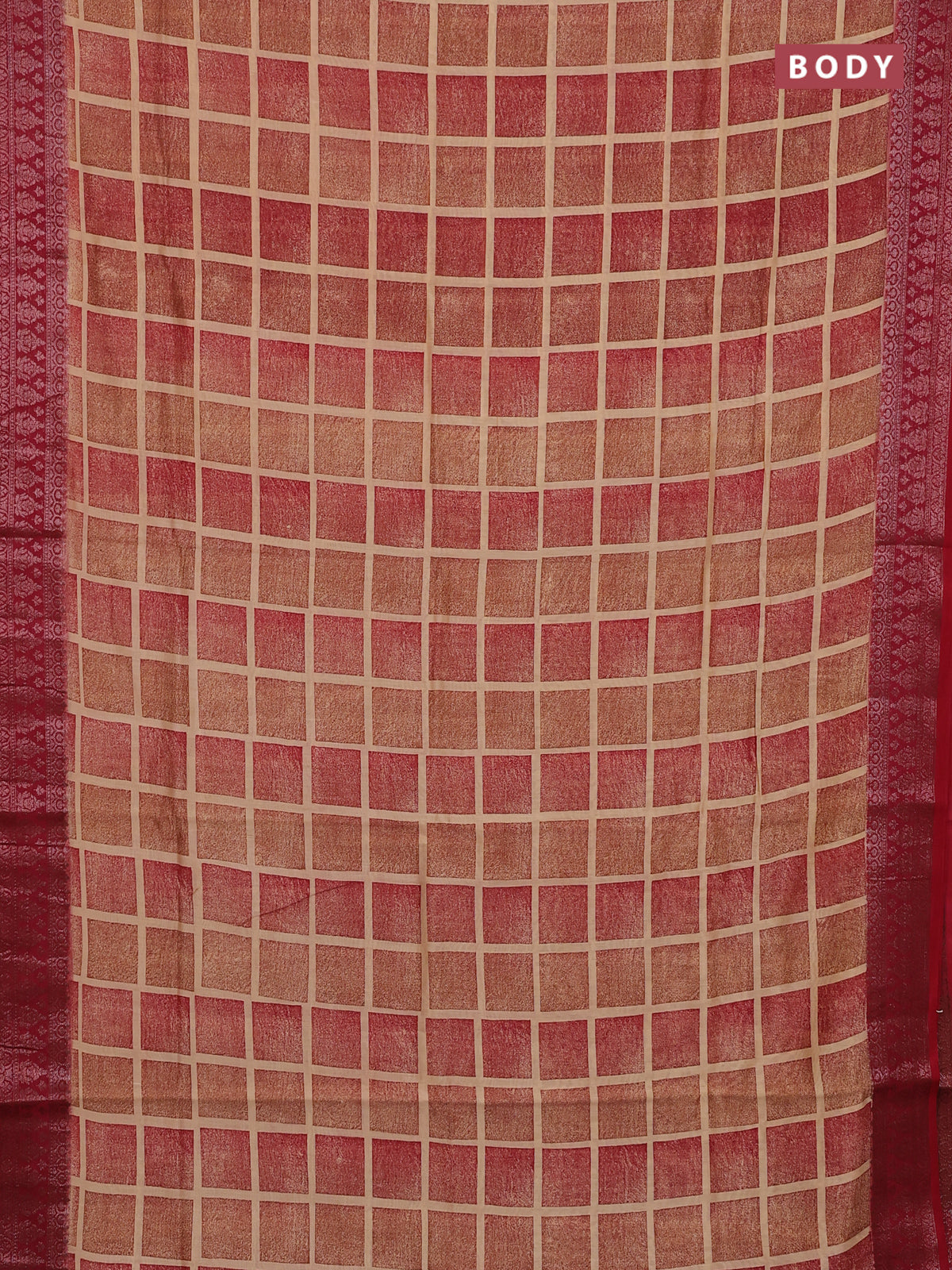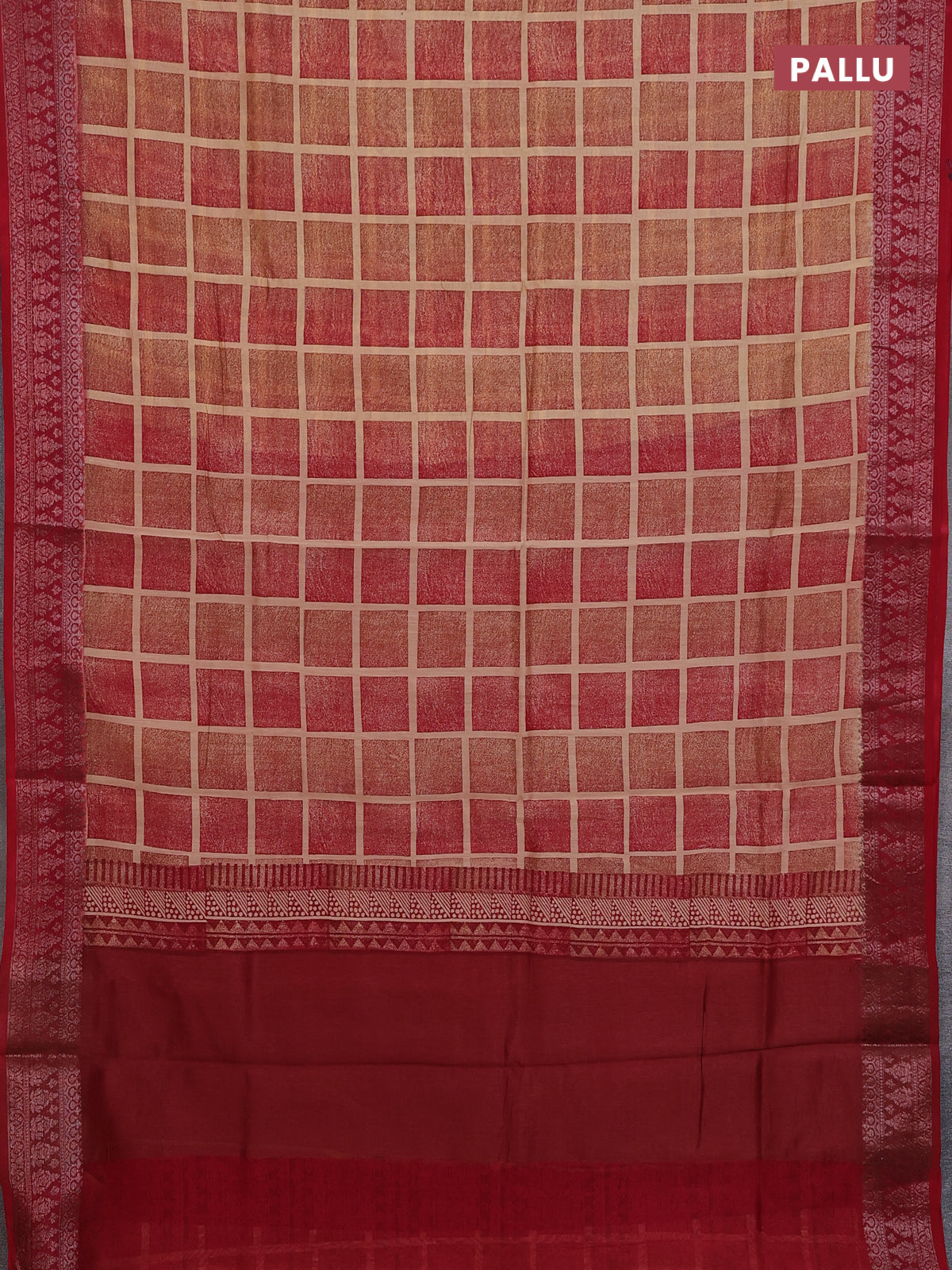 Chanderi silk cotton saree sandal and red with allover geometric prints and banarasi style border
