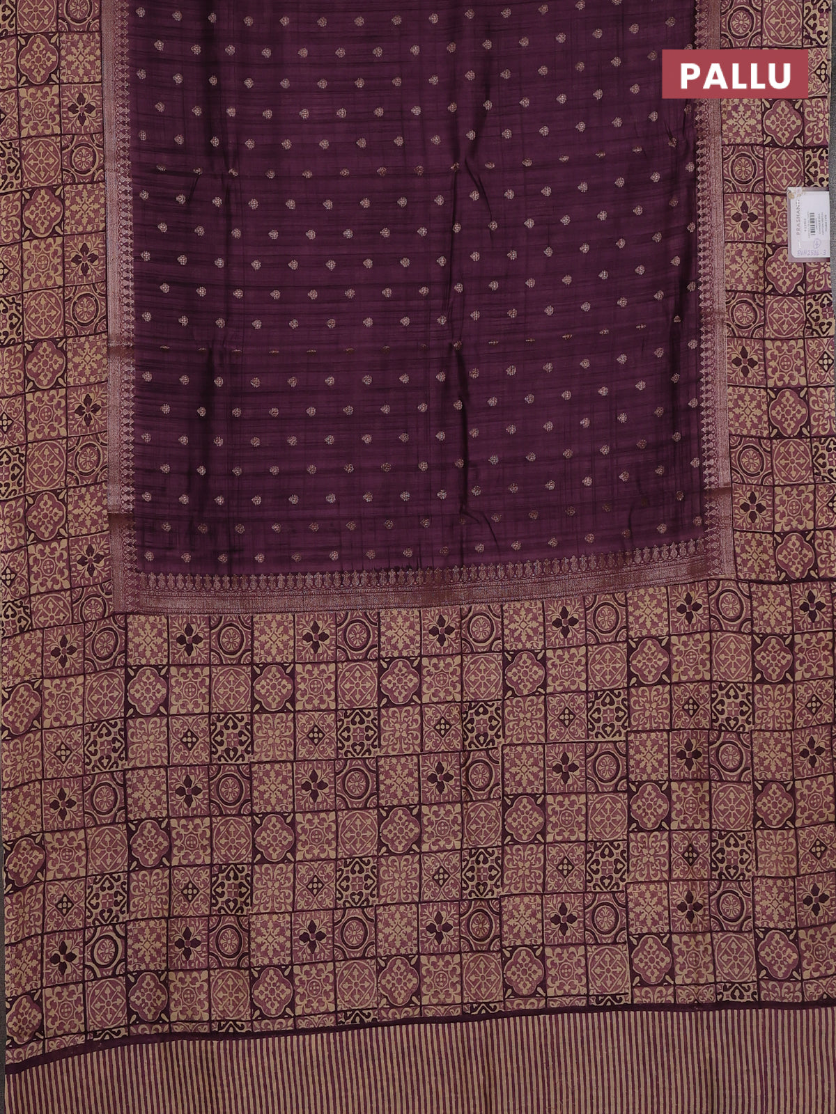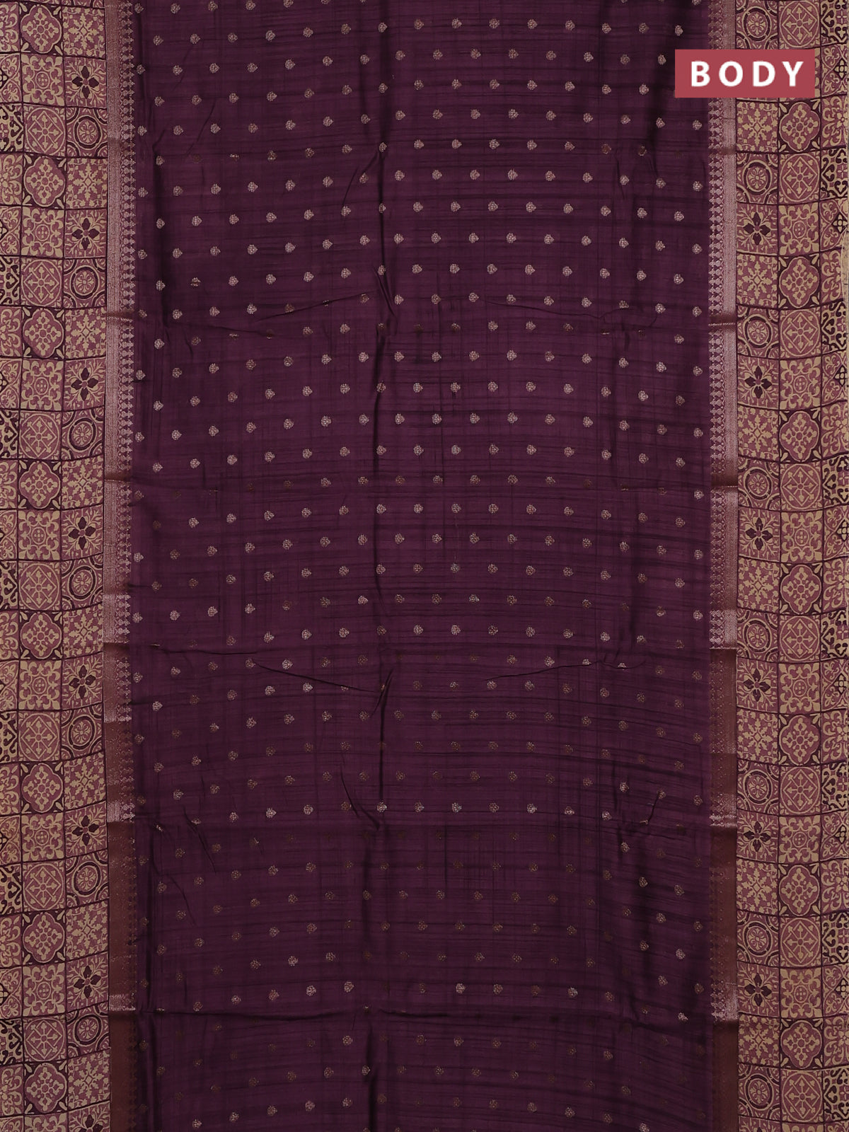 Chanderi silk cotton saree wine shade and beige with allover zari buttas and printed border
