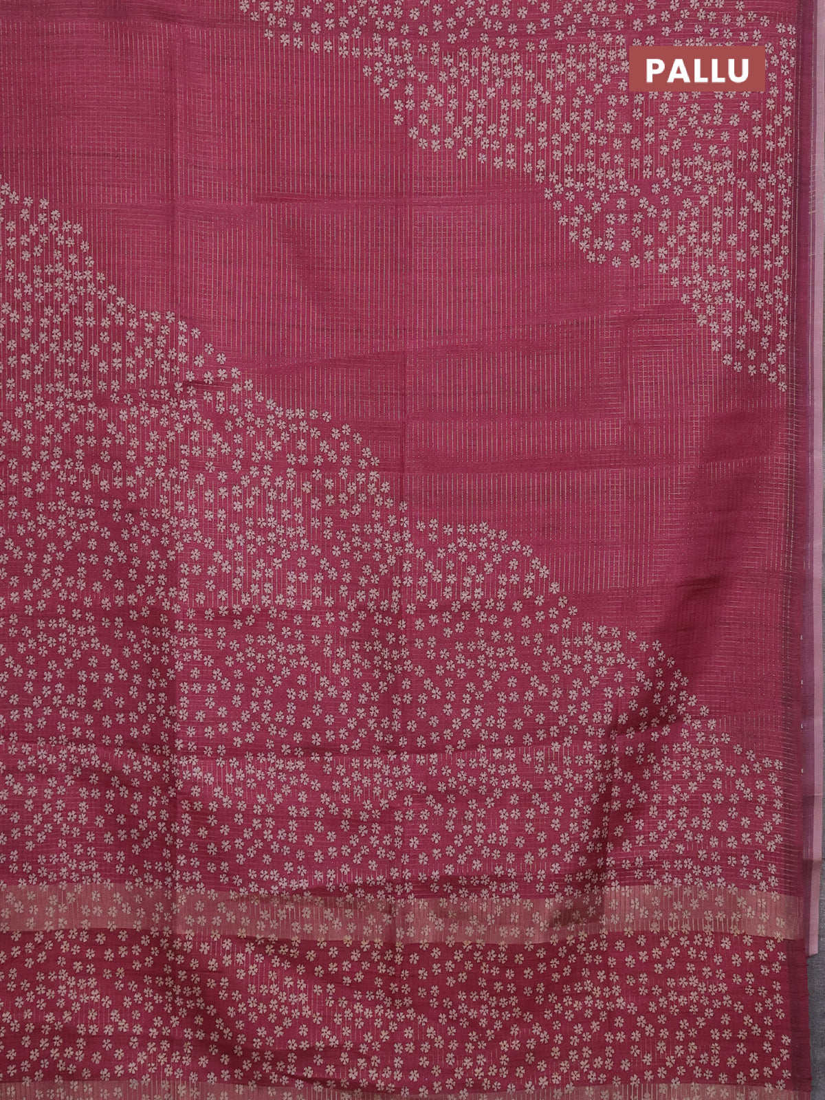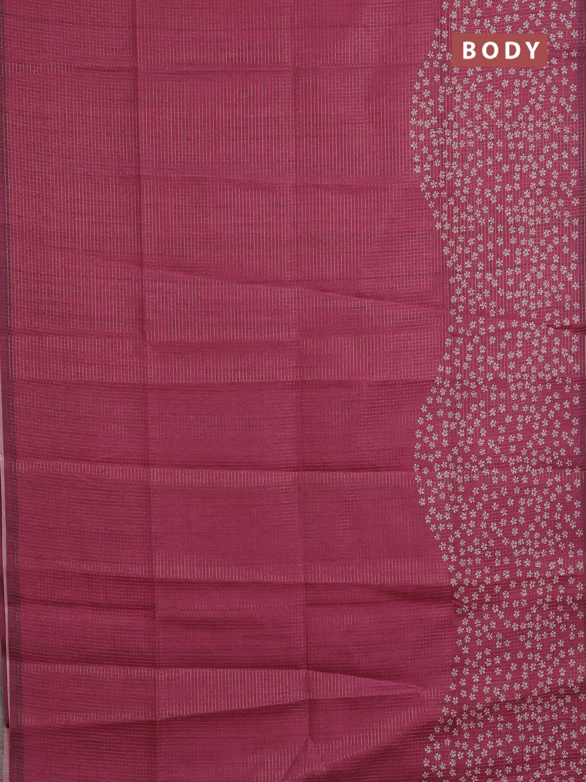 Chappa saree dark magenta pink with allover small zari checked pattern and floral digital printed pallu