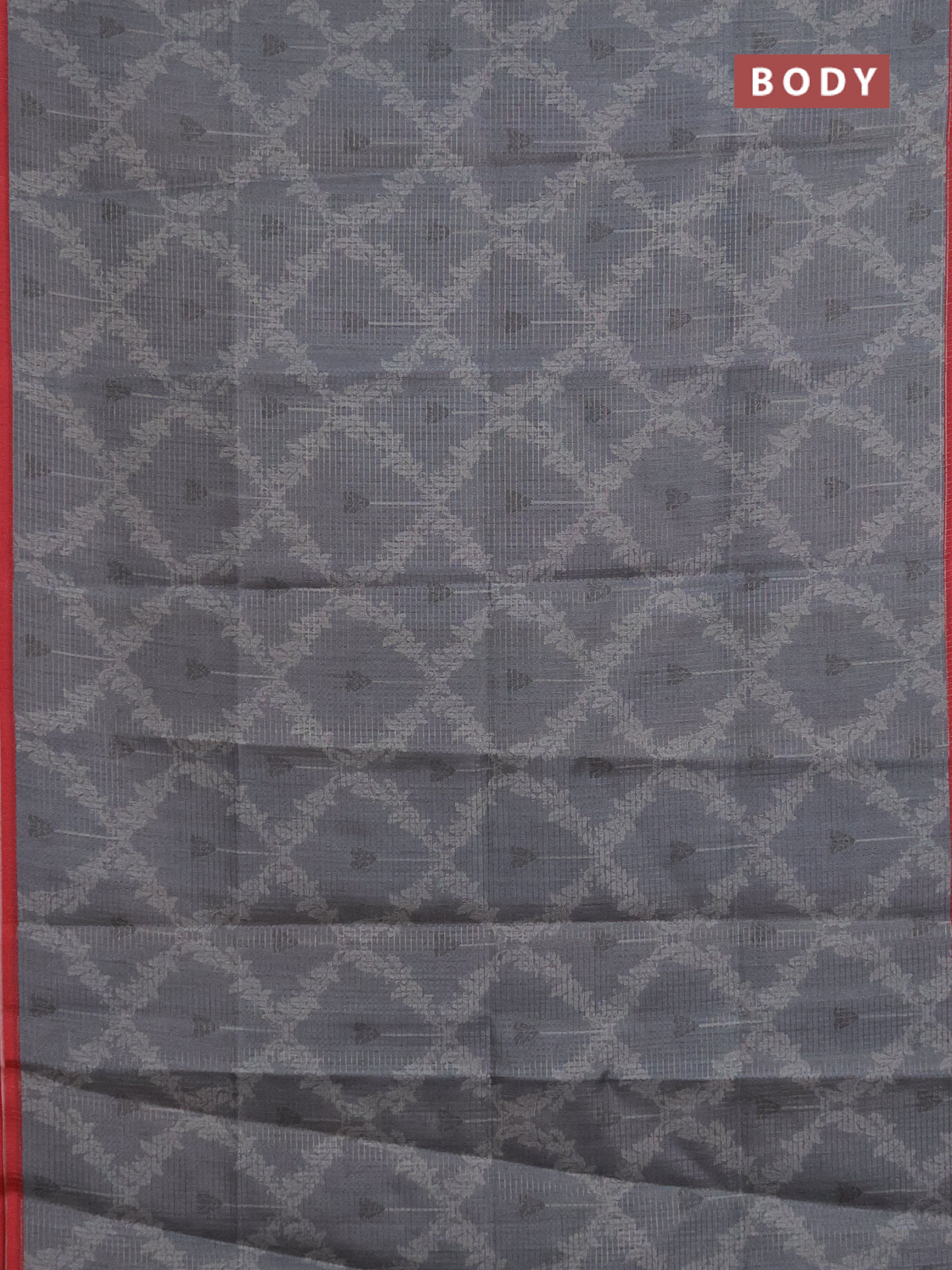 Chappa saree grey and maroon with allover small zari checked pattern & prints and piping border