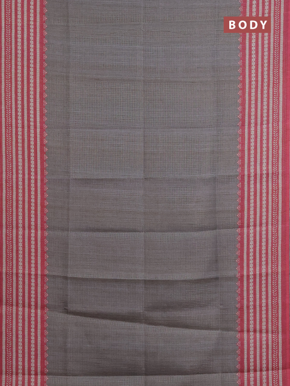 Chappa saree grey and mauve pink with allover small zari checked pattern and printed border