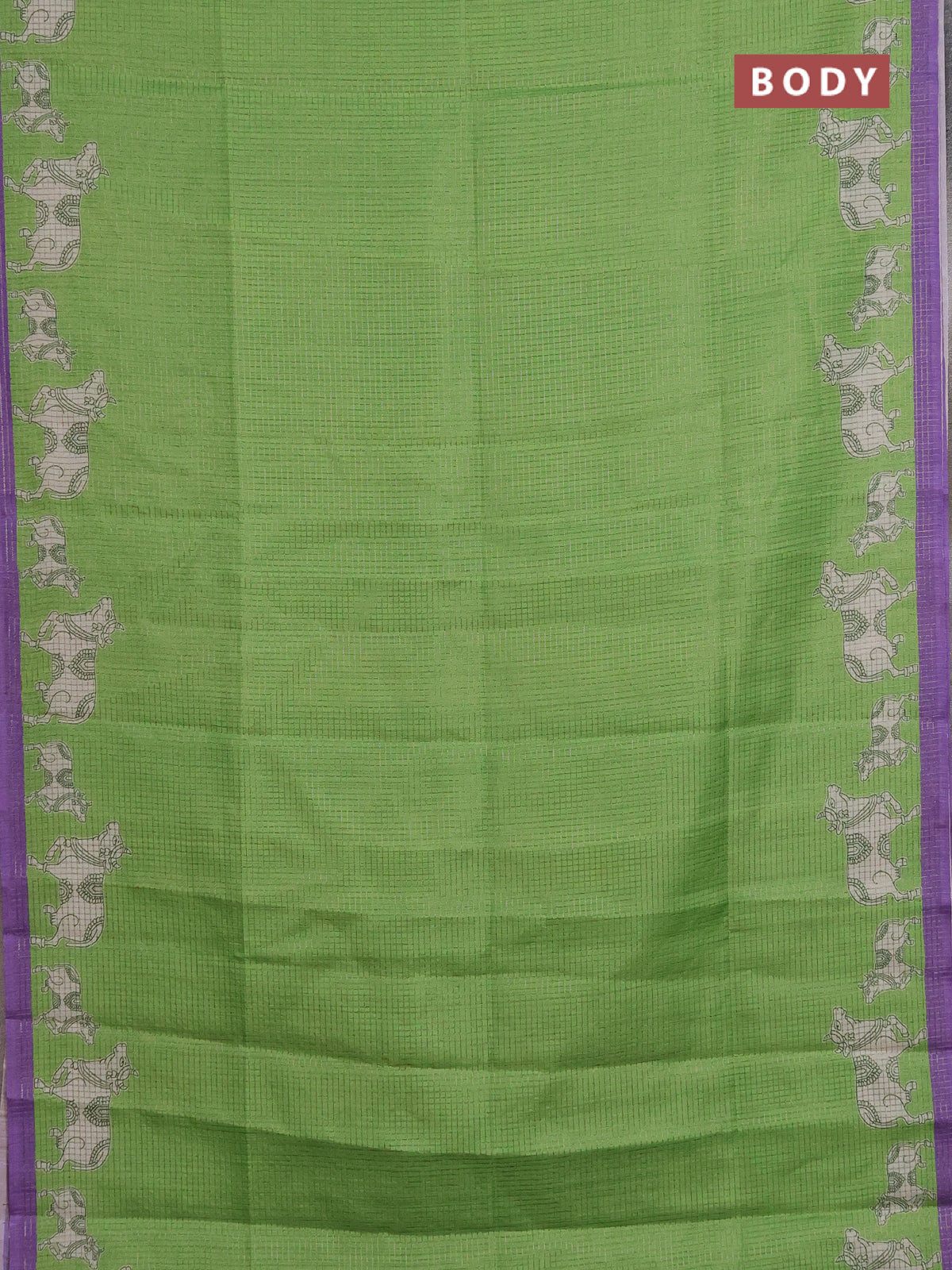 Chappa saree light green and lavender with allover small zari checked pattern and pichwai printed pallu