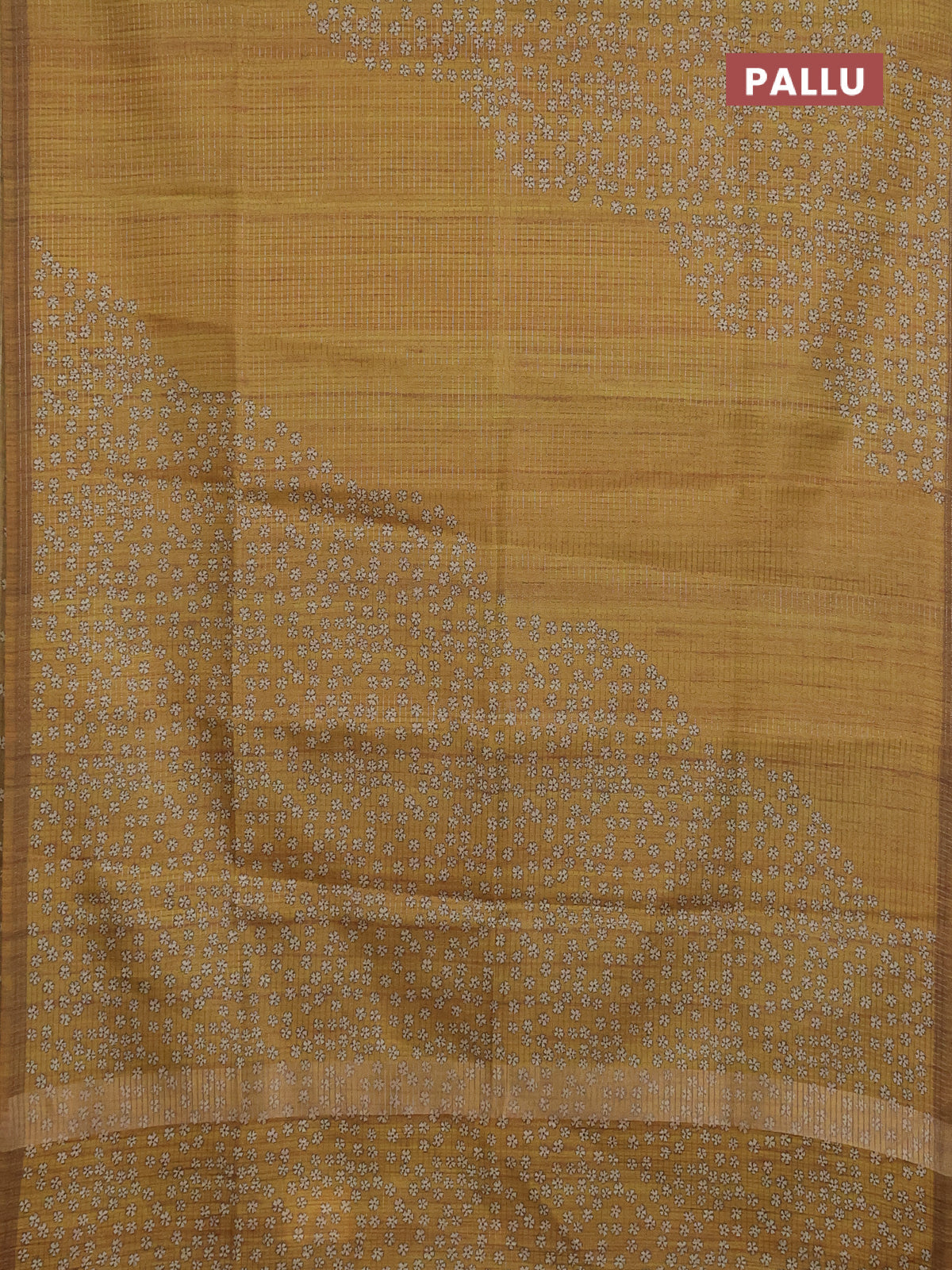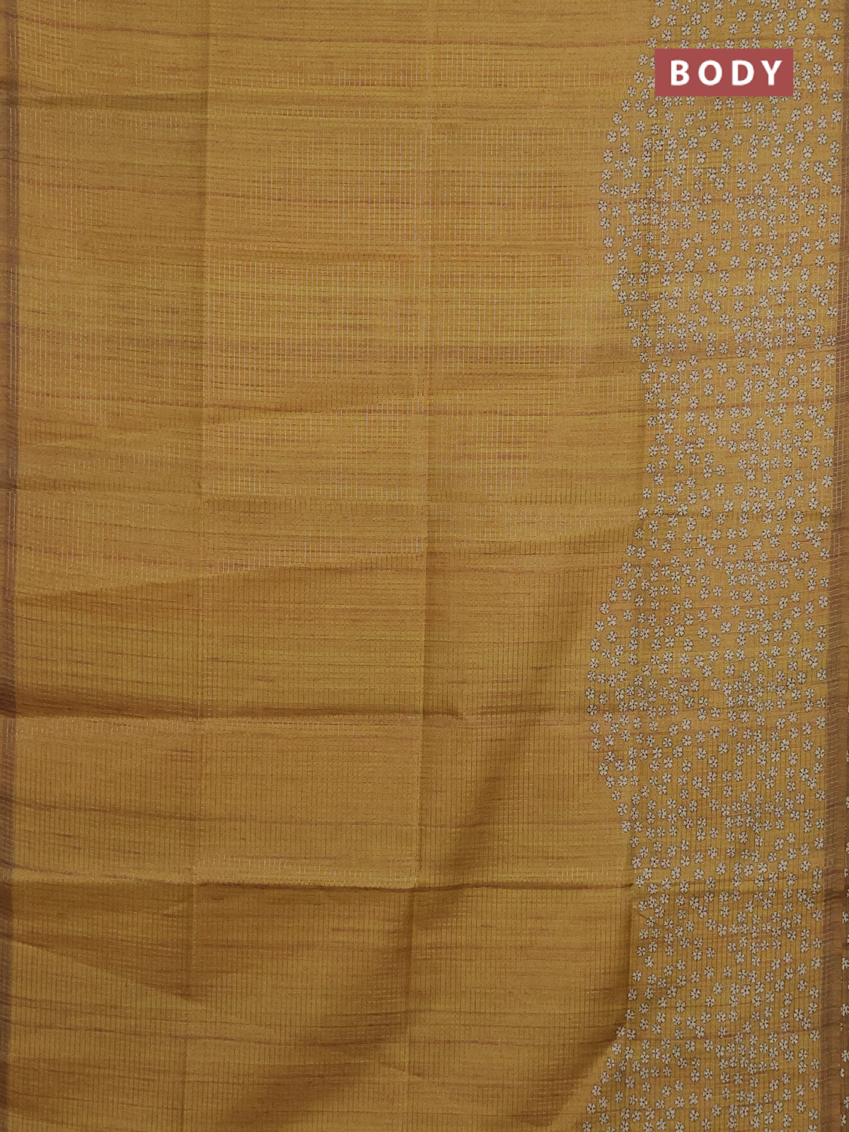 Chappa saree mustard shade with allover small zari checked pattern and floral digital printed pallu