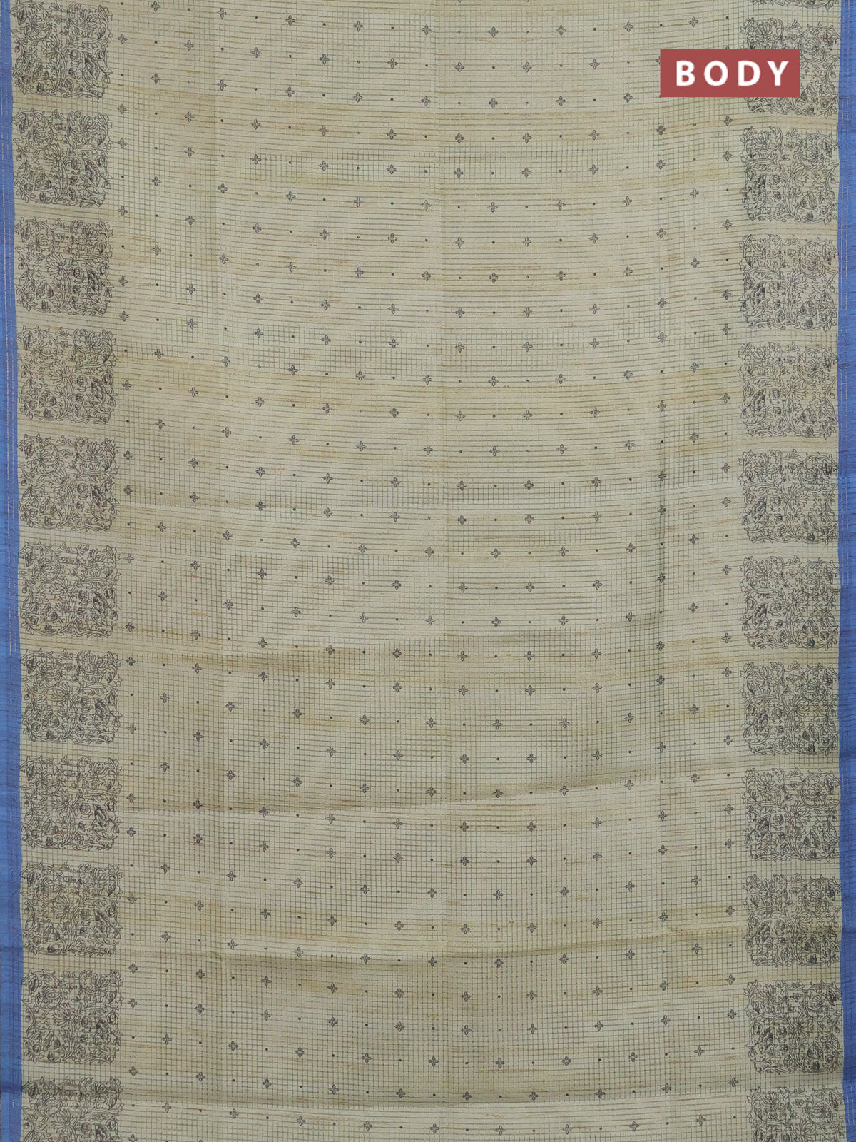 Chappa saree pastel green and blue with allover small zari checked pattern & butta prints and printed border