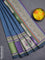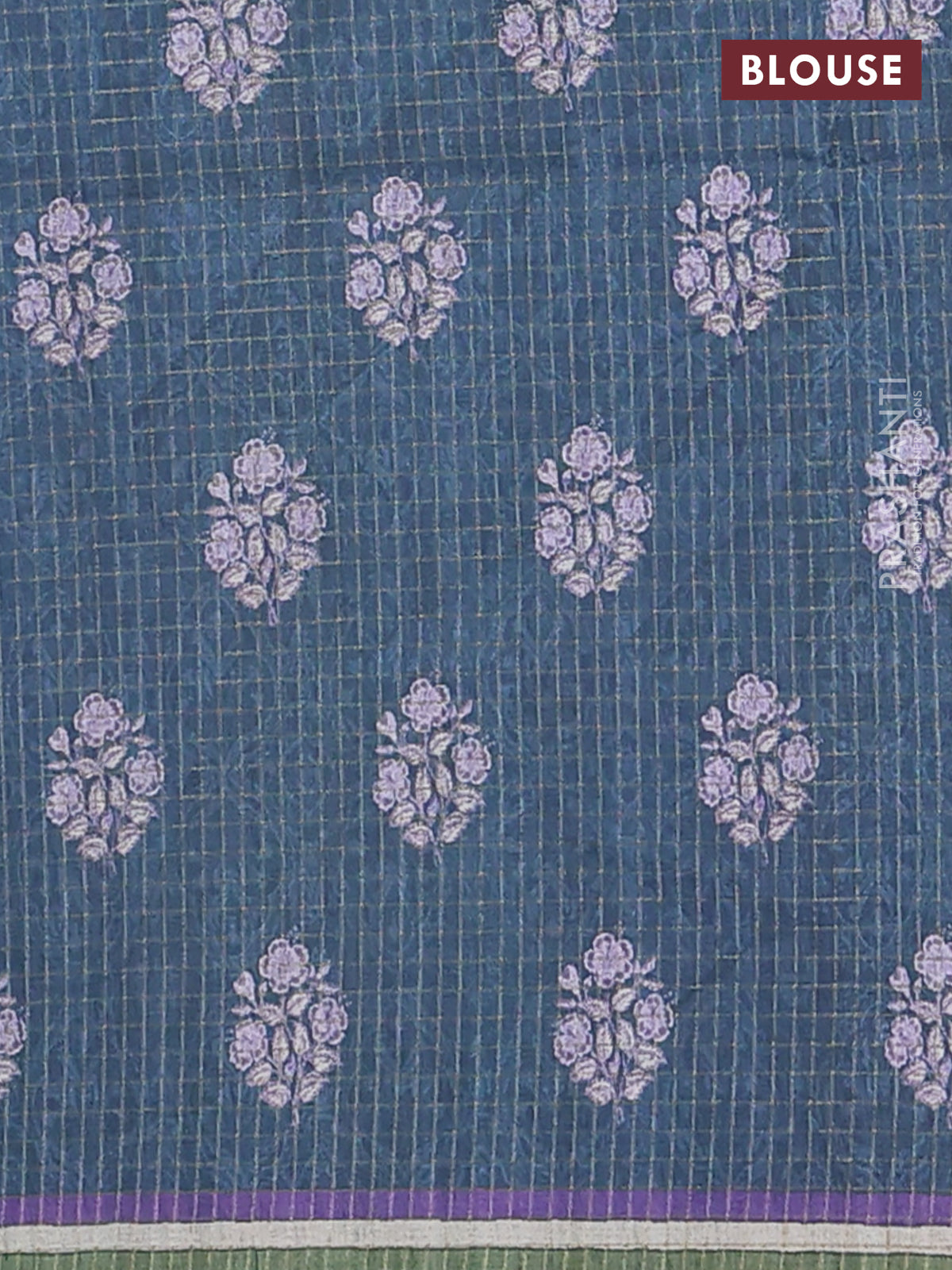 Chappa saree peacock blue with allover zari checked pattern and printed pallu