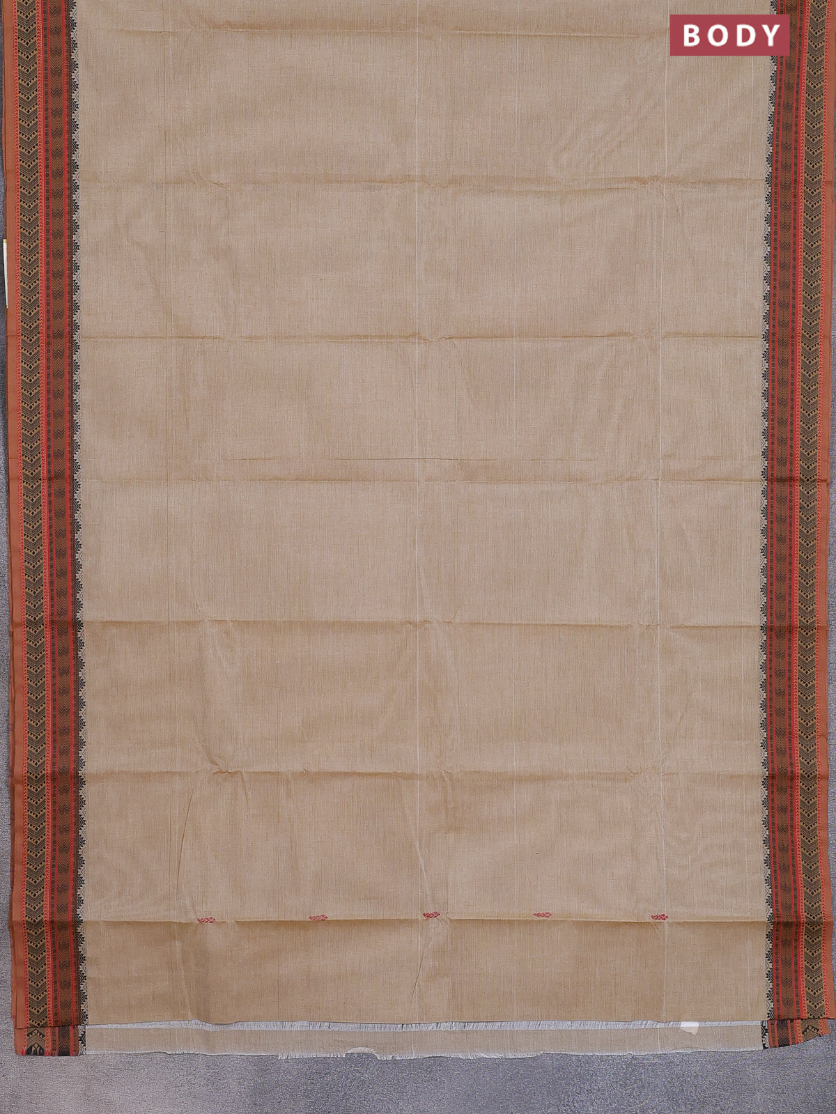 Chettinad cotton saree beige and brown with thread woven buttas and thread woven border