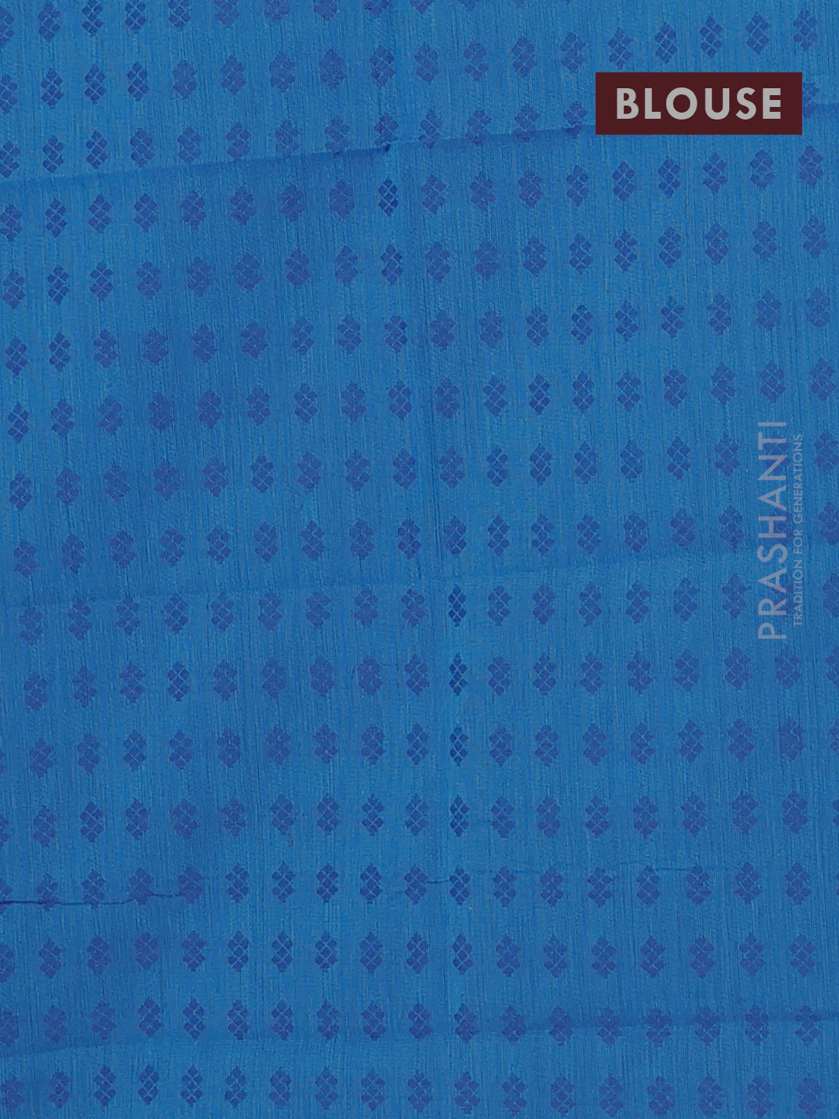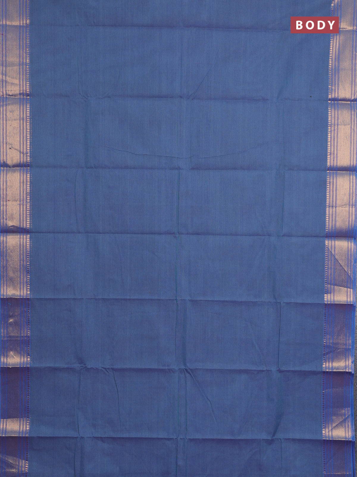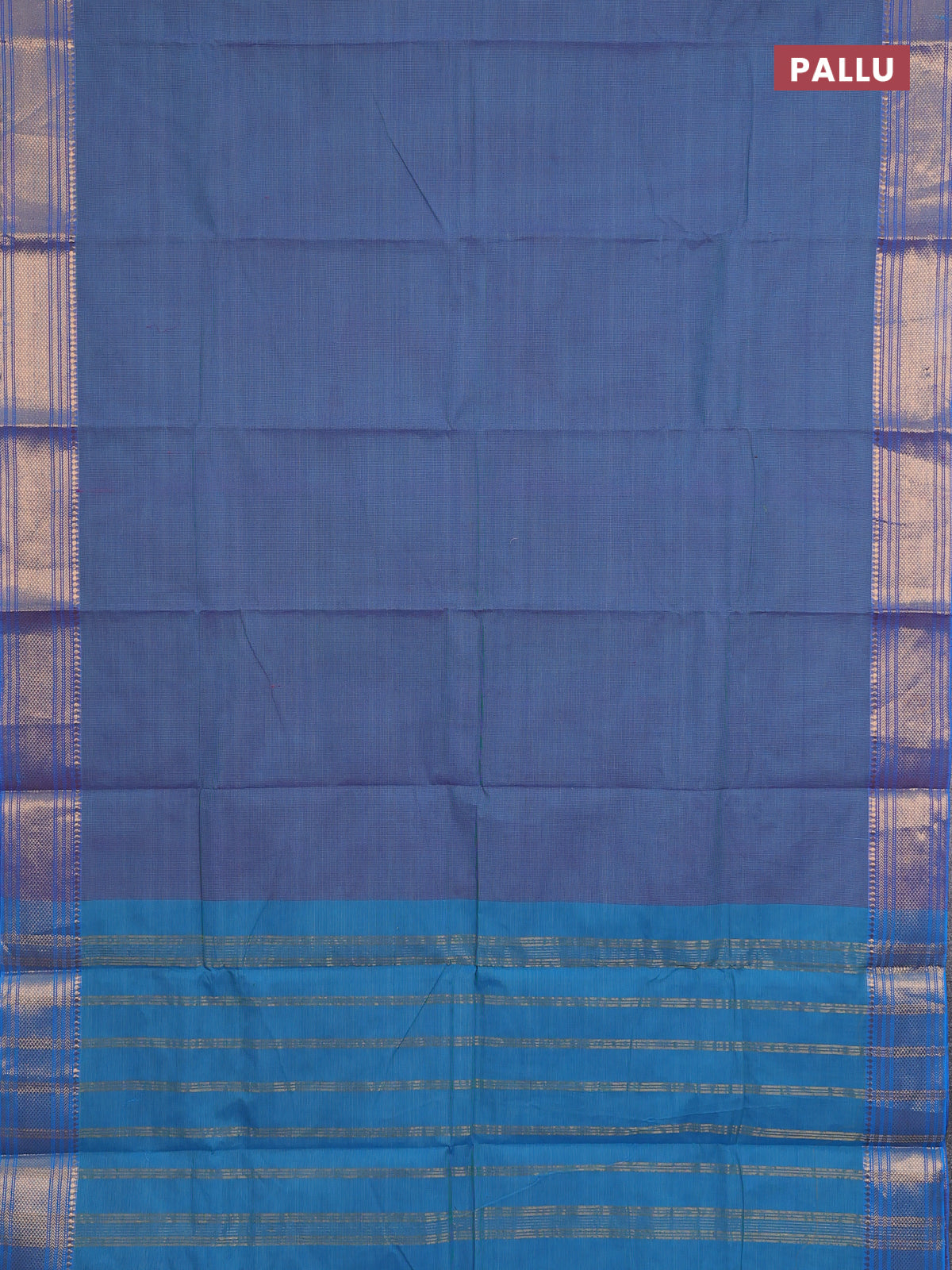 Chettinad cotton saree blue with allover small checked pattern and zari woven border