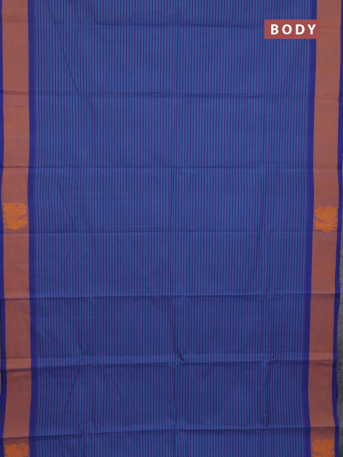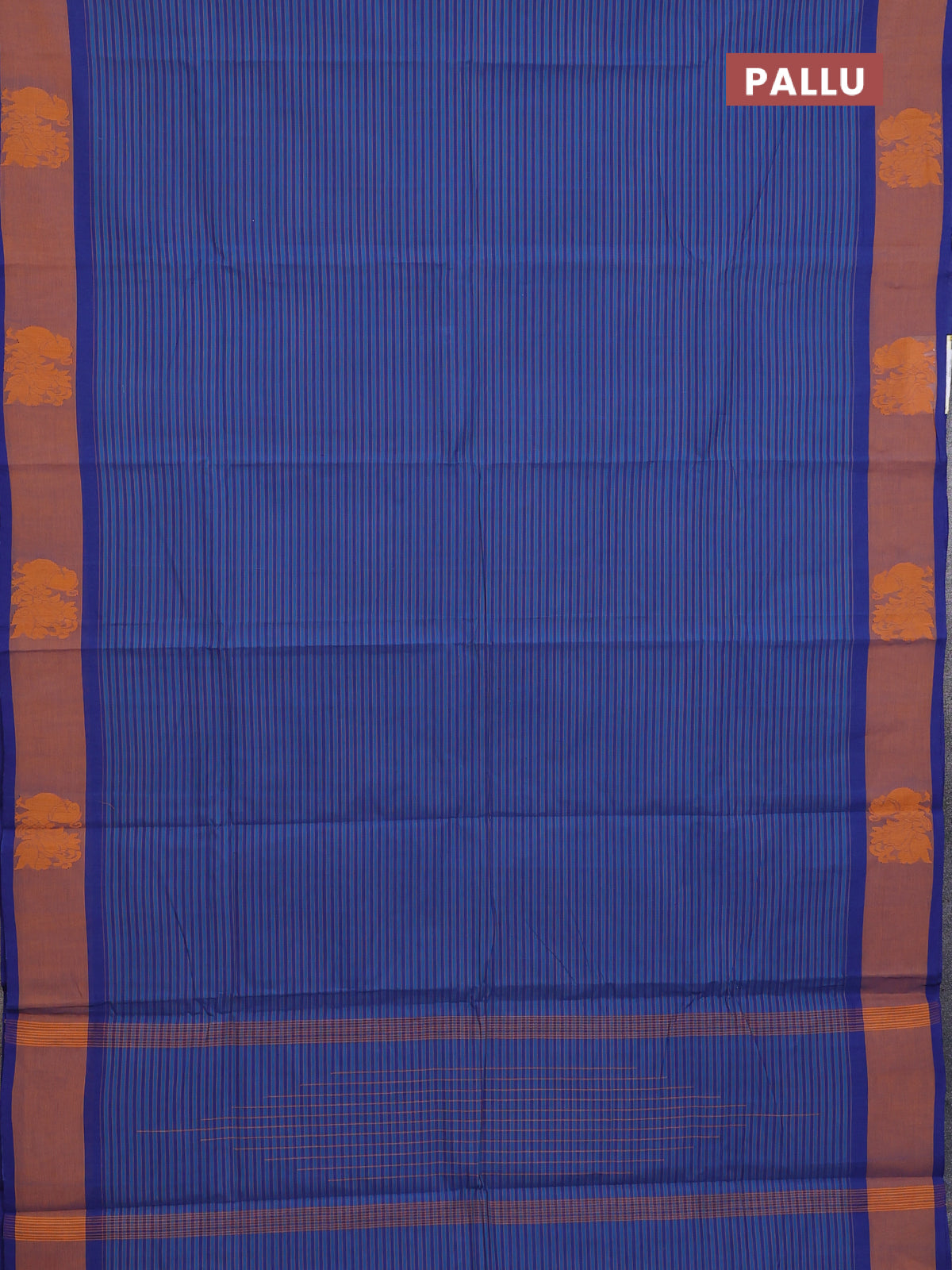 Chettinad cotton saree cs blue and blue rust with allover stripe pattern and annam thread woven butta border