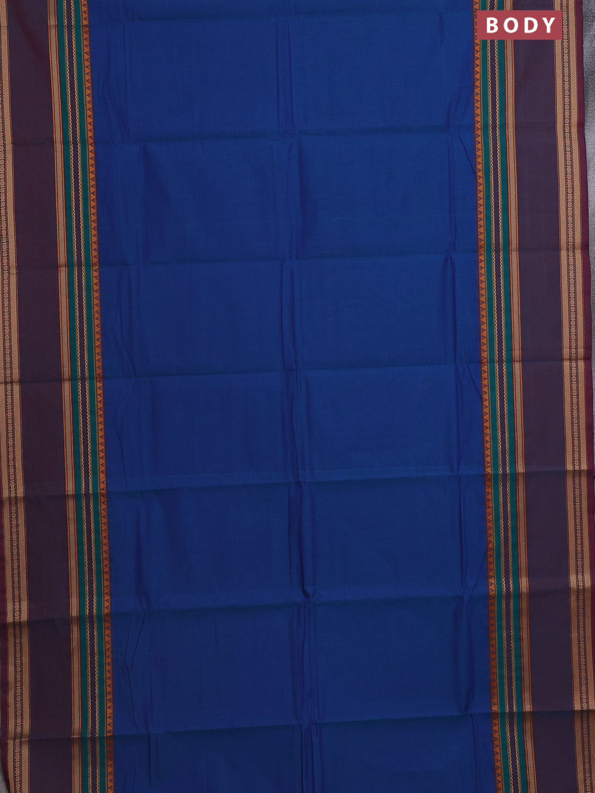 Chettinad cotton saree cs blue and rust shade with plain body and long rettapet thread woven border