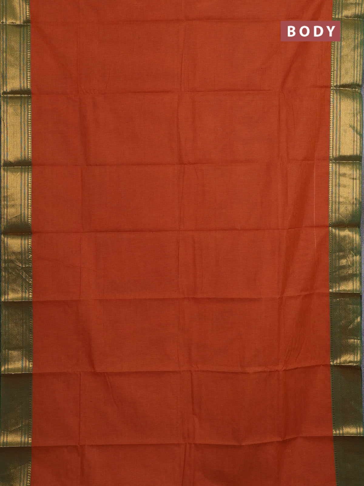 Chettinad cotton saree dark mustard and green with allover small checked pattern and zari woven border