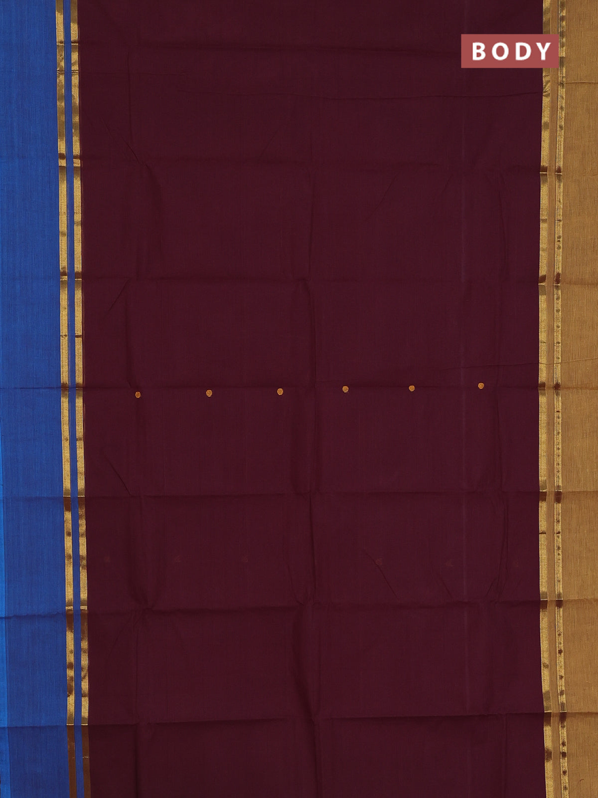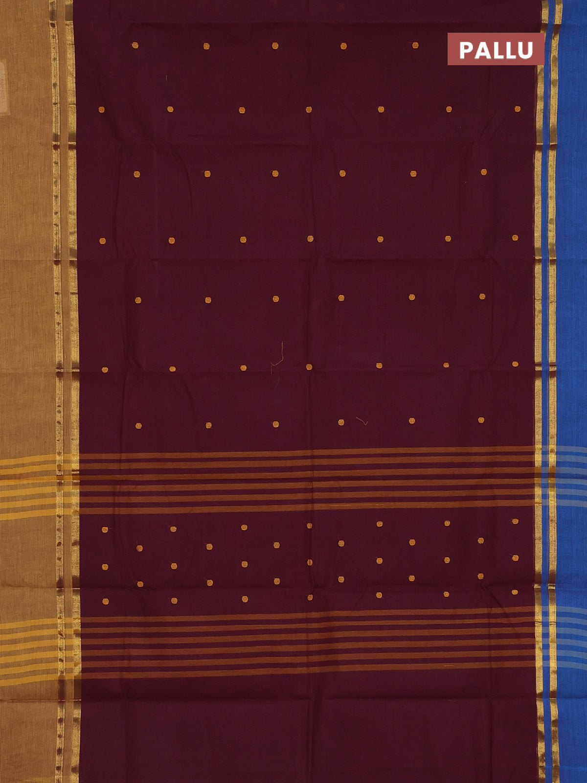 Chettinad cotton saree deep maroon and mustard yellow with thread woven buttas and ganga jamuna border