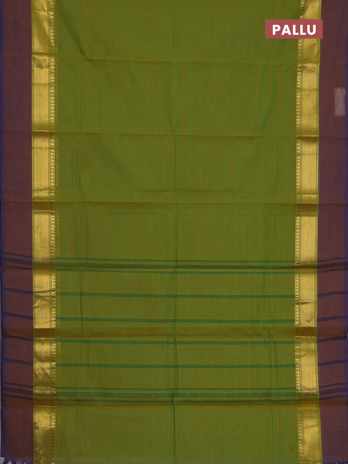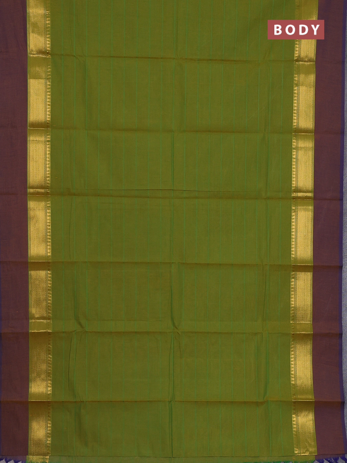 Chettinad cotton saree light green and dual shade of blue with thread woven buttas and zari woven simple border