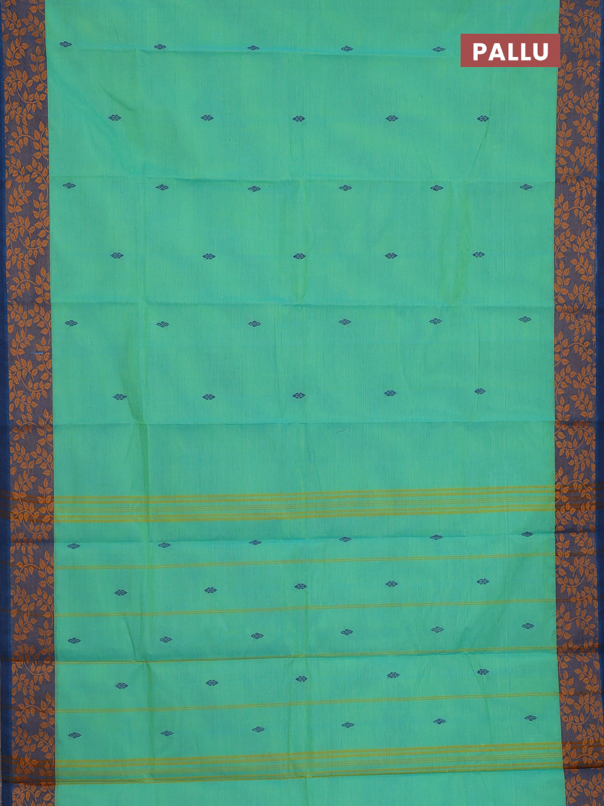 Chettinad cotton saree light green and peacock blue with thread woven buttas and leaf design border