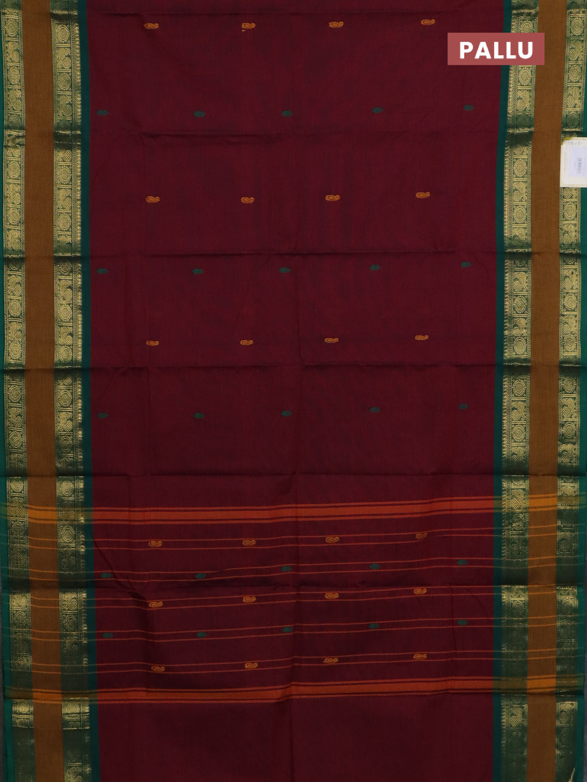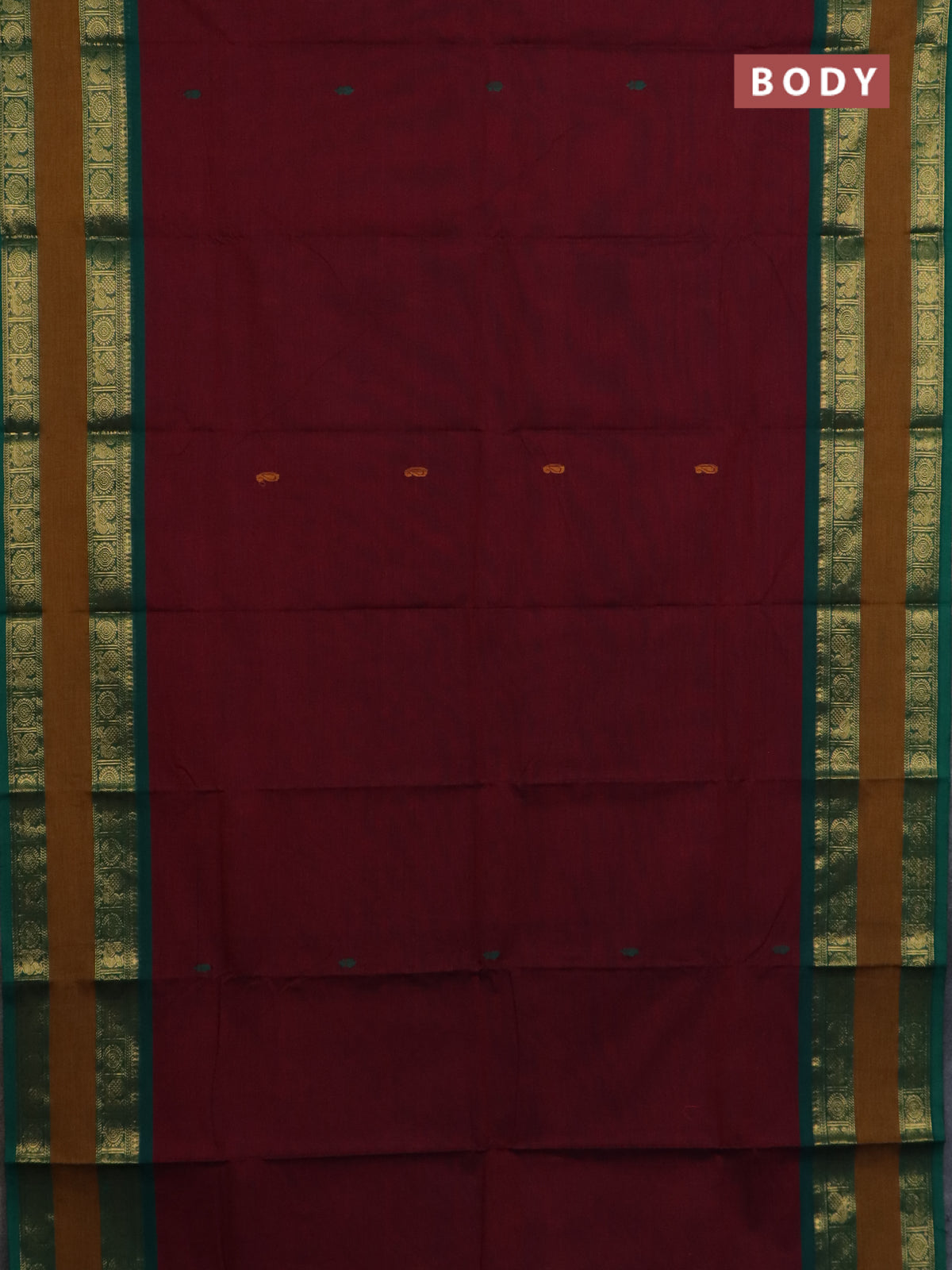 Chettinad cotton saree maroon and dark mustard with plain body and rettapet zari woven border