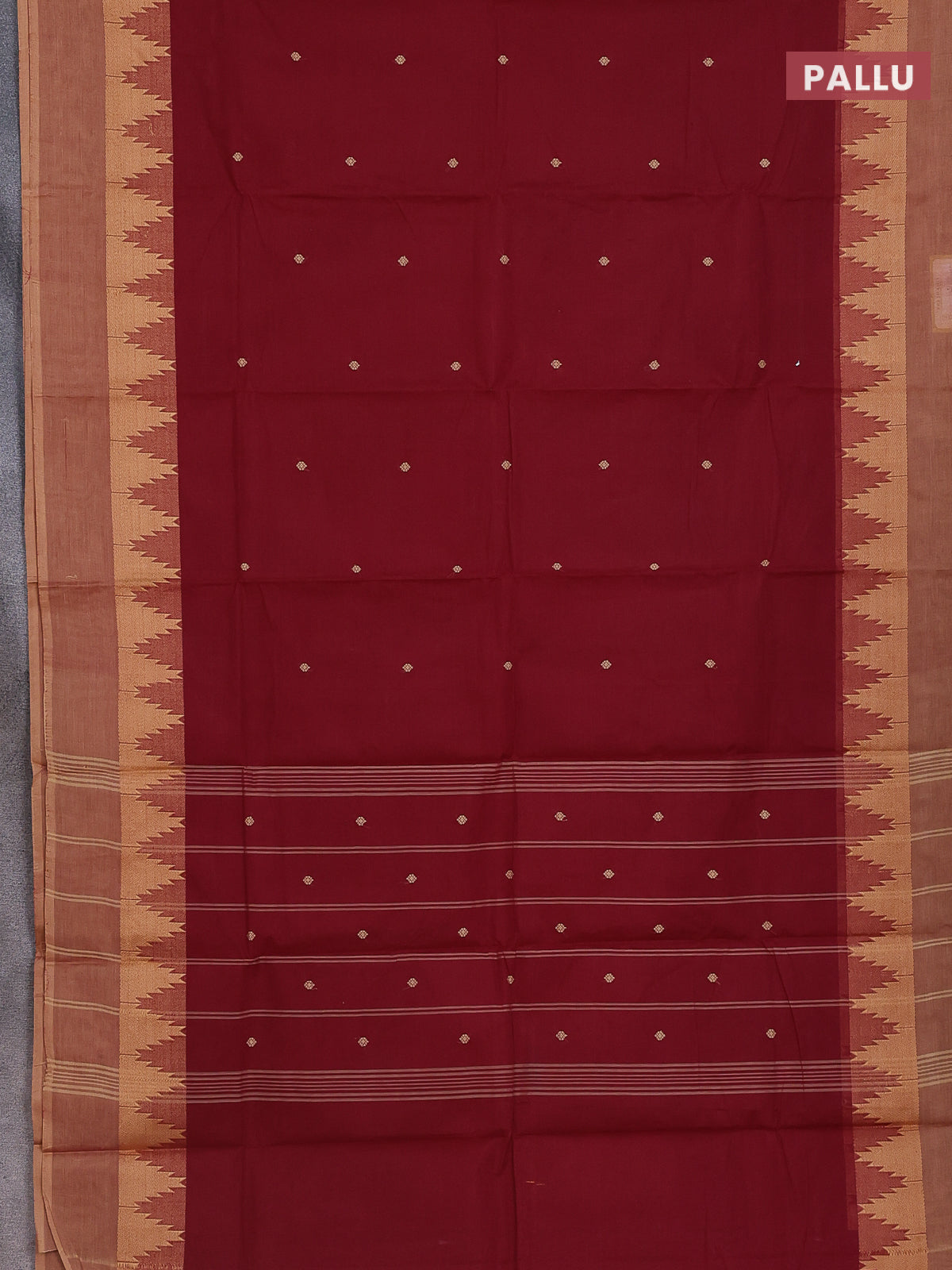 Chettinad cotton saree maroon and sandal with thread woven buttas and temple thread woven simple border
