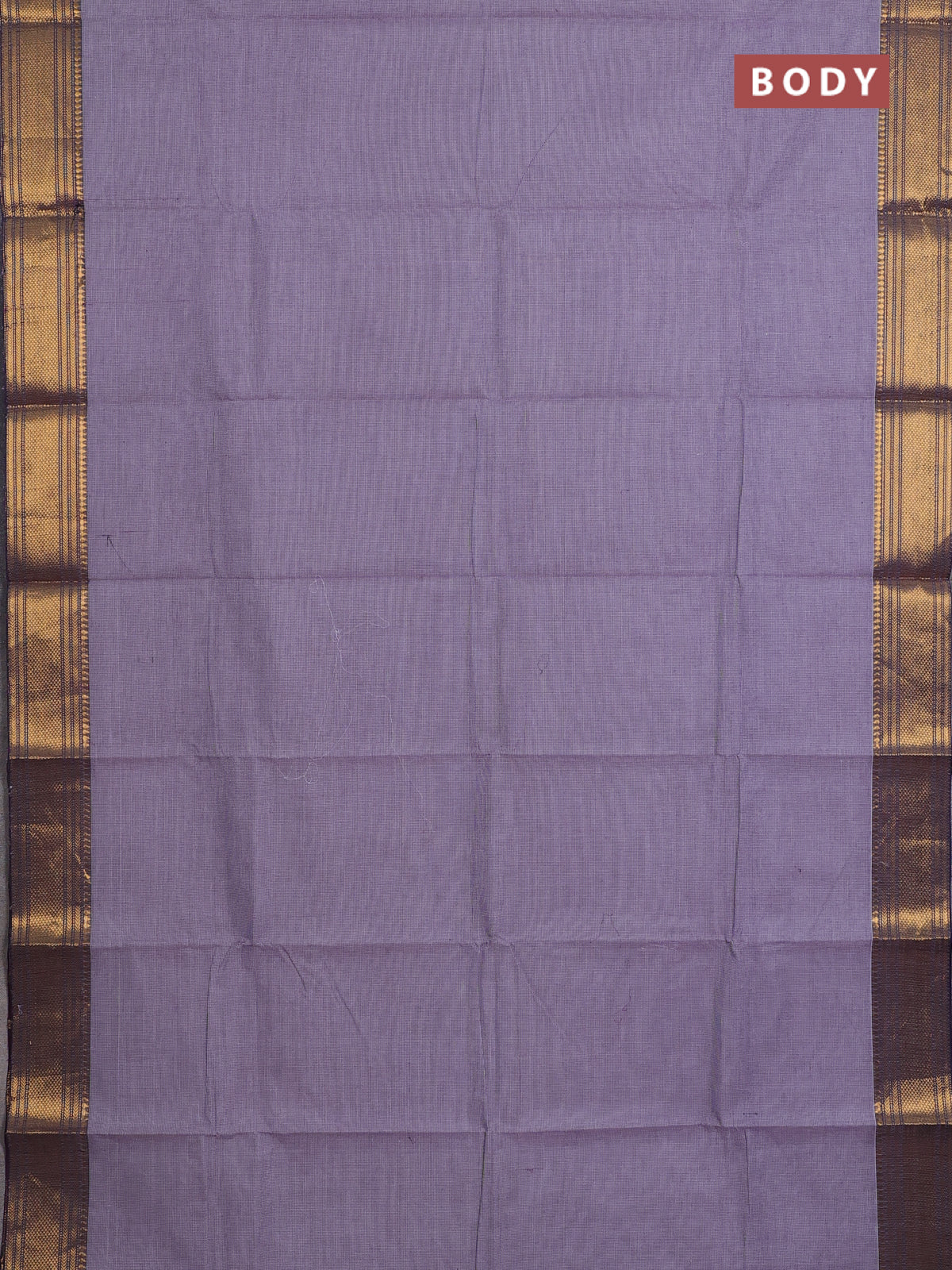Chettinad cotton saree off white and purple with allover small checked pattern and zari woven border