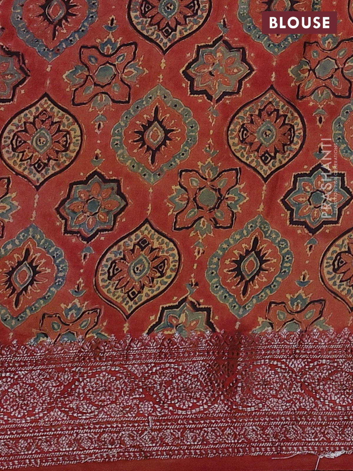 Chiniya silk saree dark mustard and rust shade with plain body and woven border