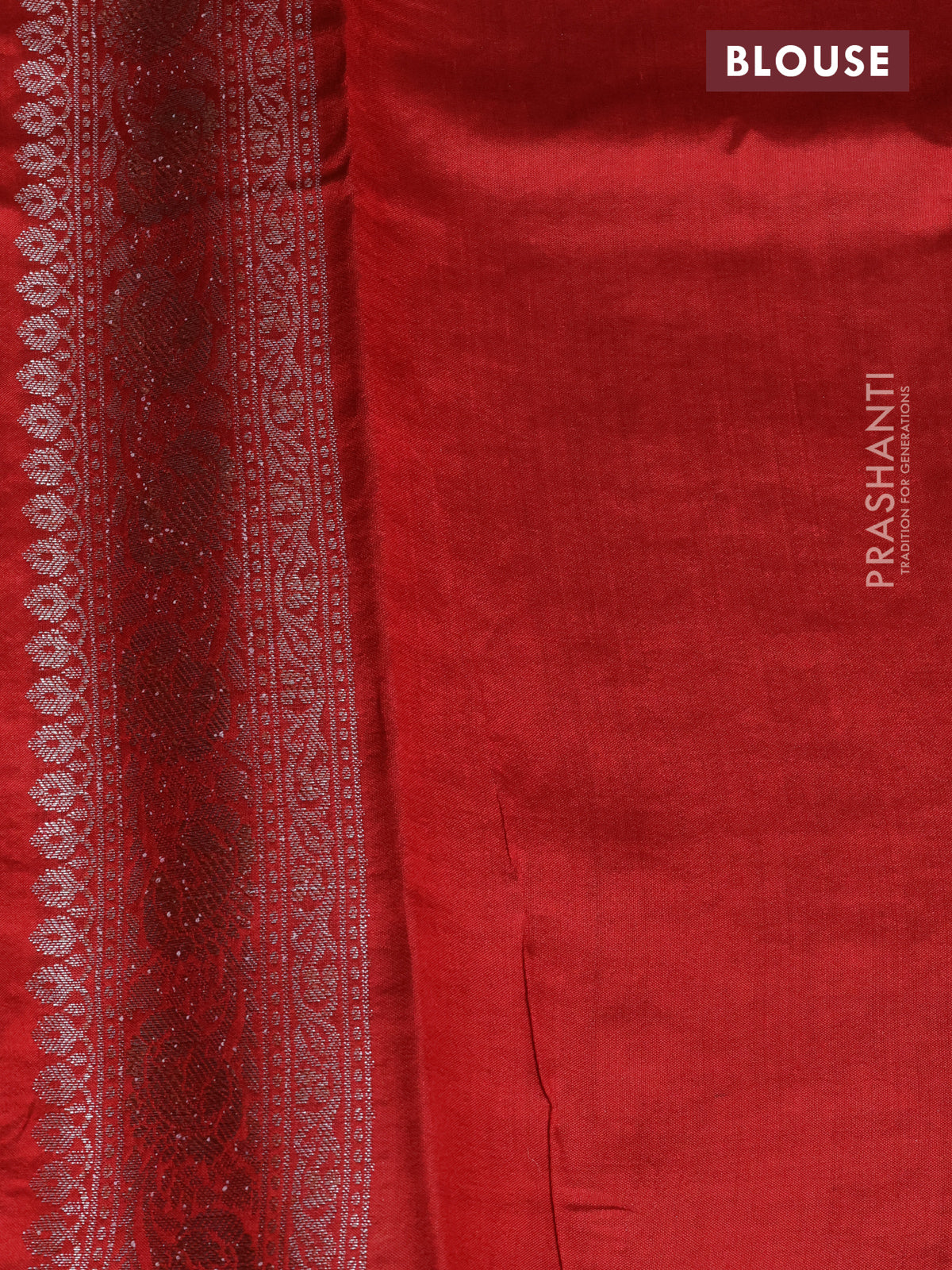 Chiniya silk saree pale yellow and red with allover thread & zari woven buttas and woven border