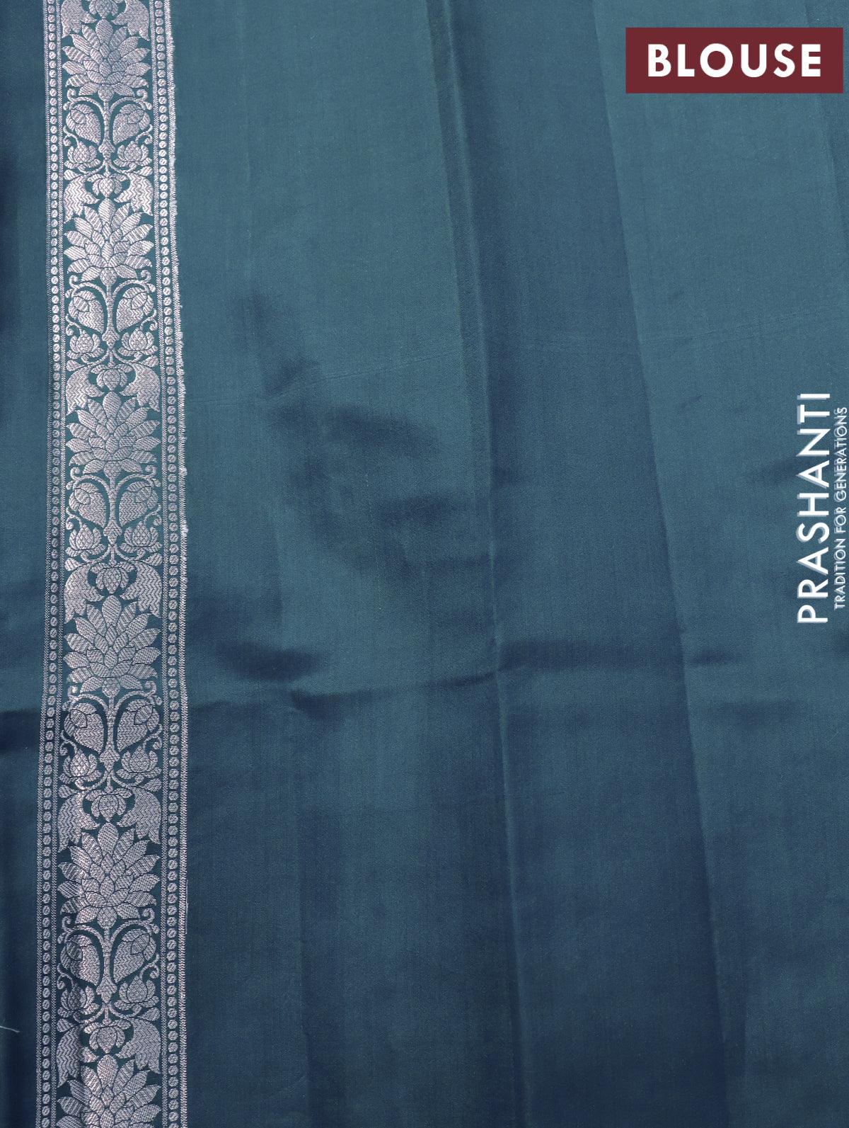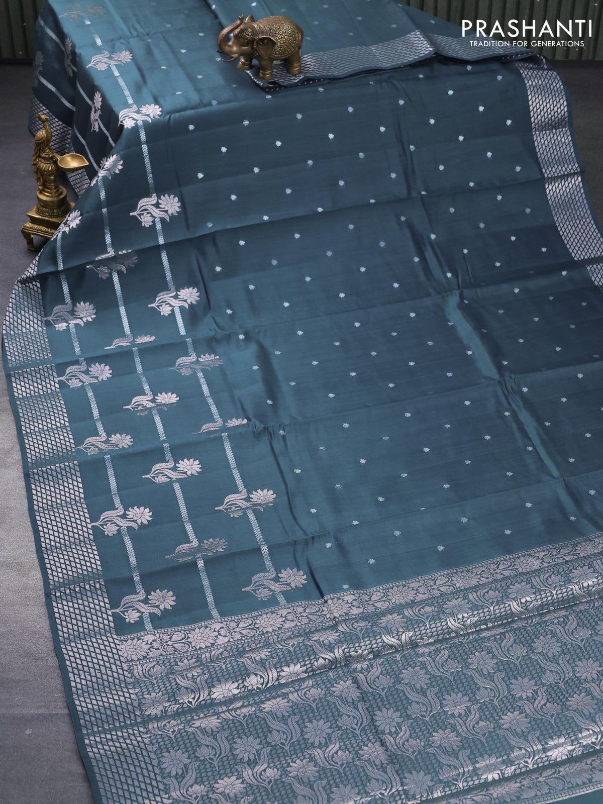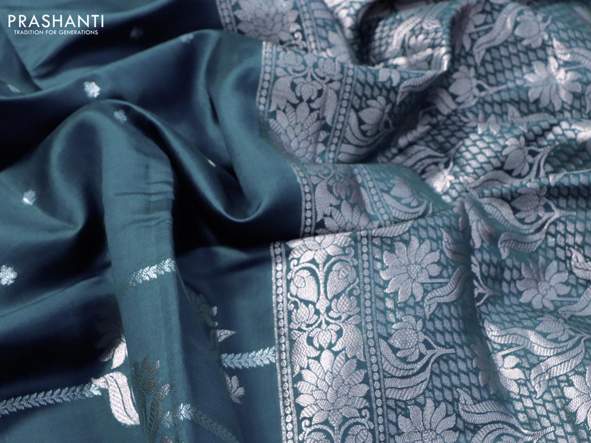 Chiniya silk saree peacoock green with silver zari woven buttas and zari woven border