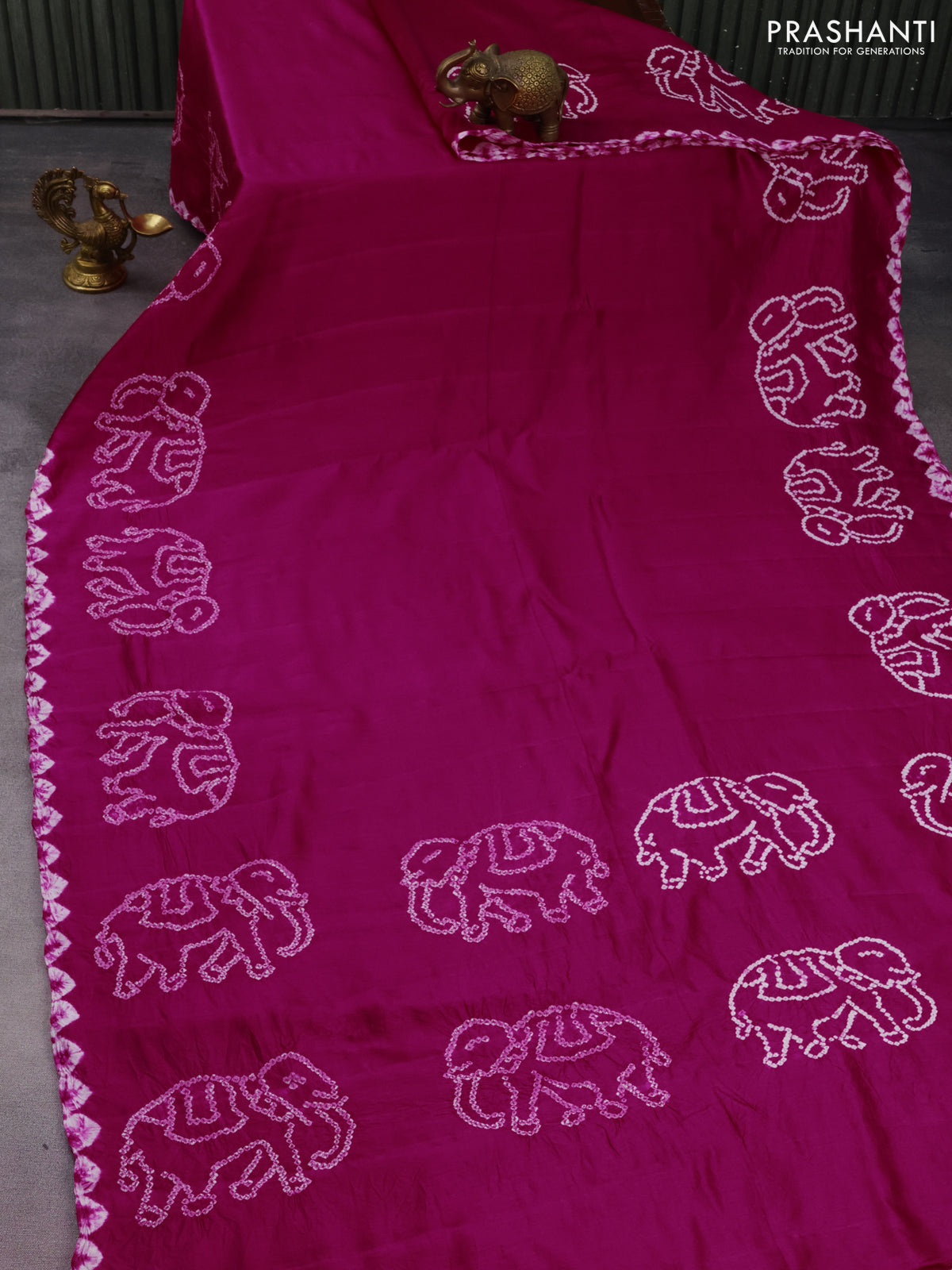 Chiniya silk saree pink with allover bandhani prints