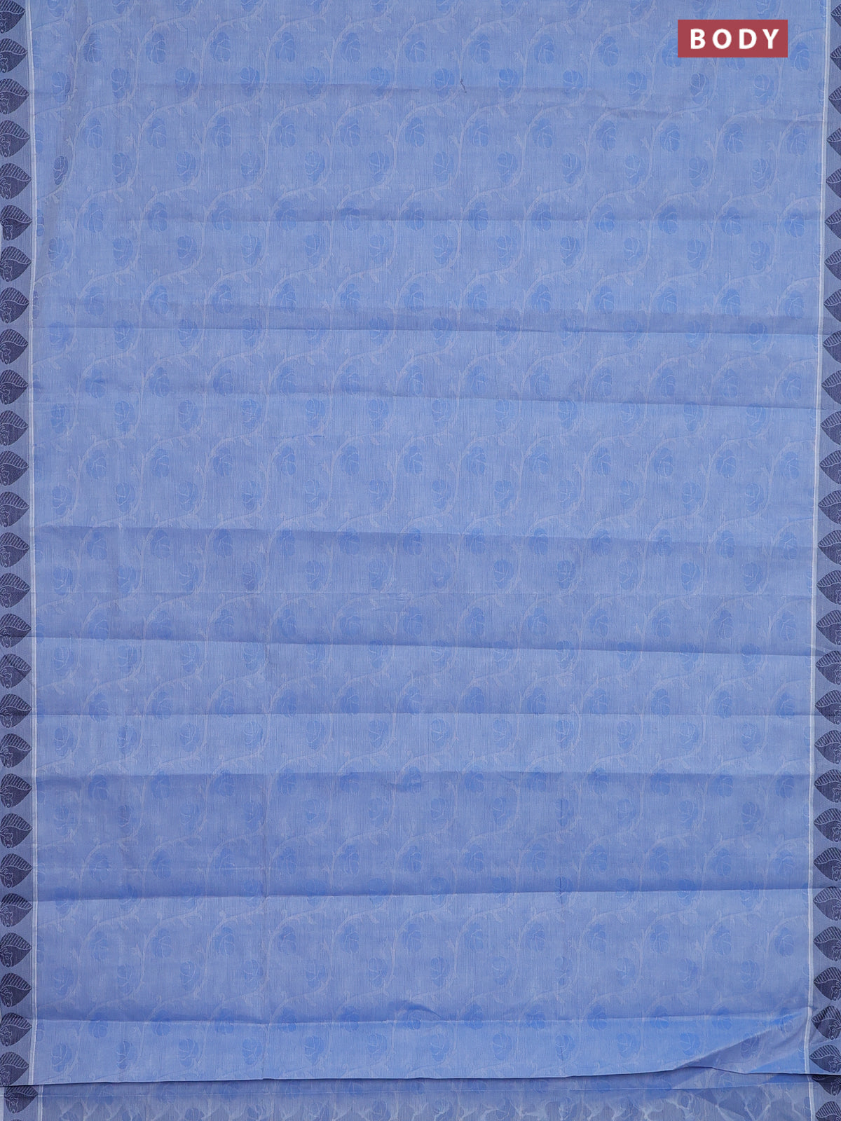 Coimbatore cotton saree blue shade with allover self emboss and thread woven border