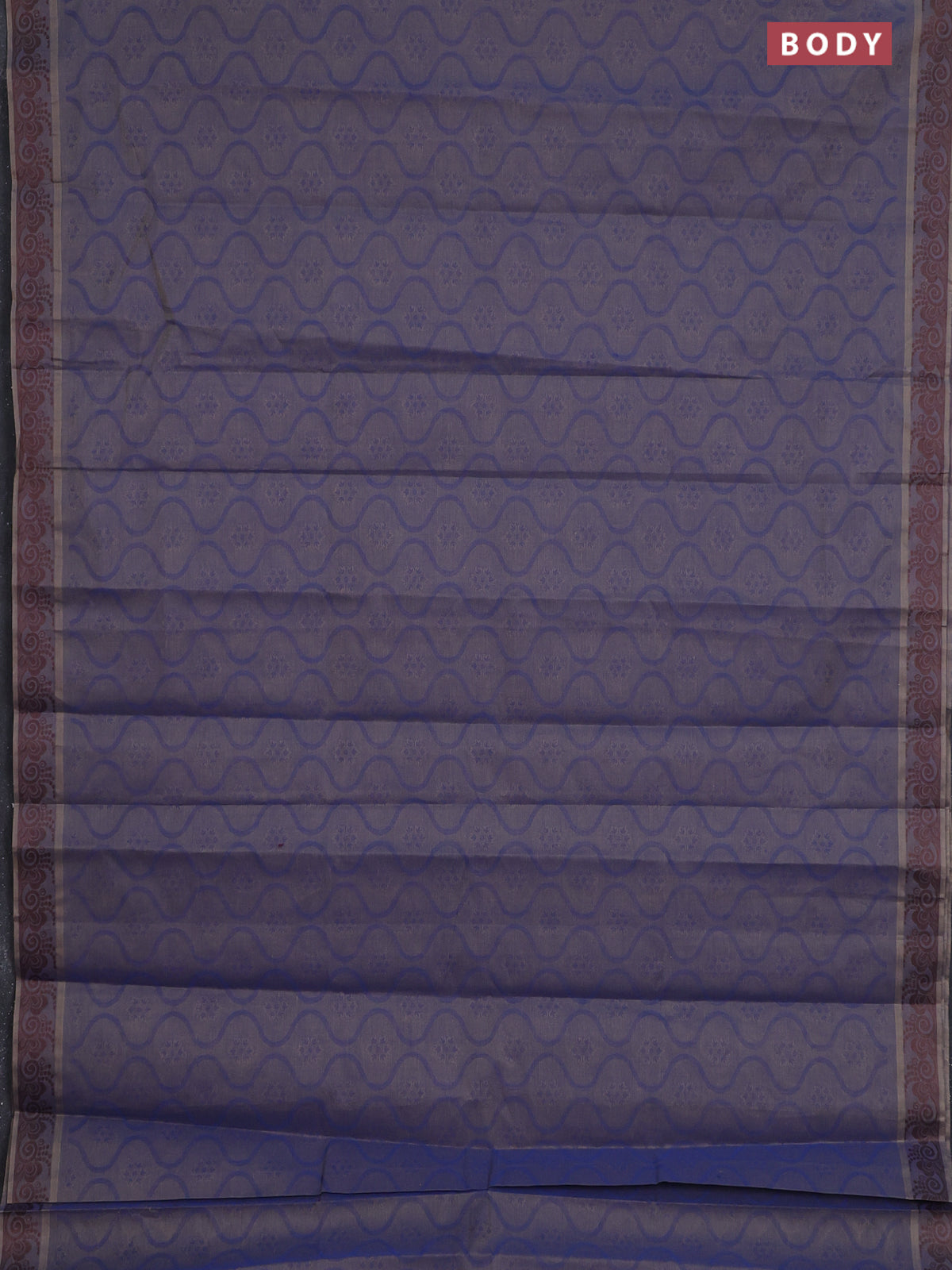 Coimbatore cotton saree dual shade of blue and coffee brown with allover self emboss and thread woven border