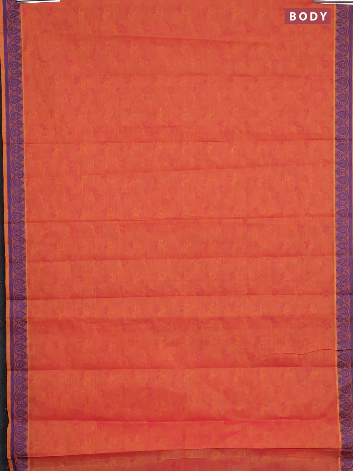 Coimbatore cotton saree dual shade of pinkish orange and blue with allover self emboss and thread woven border