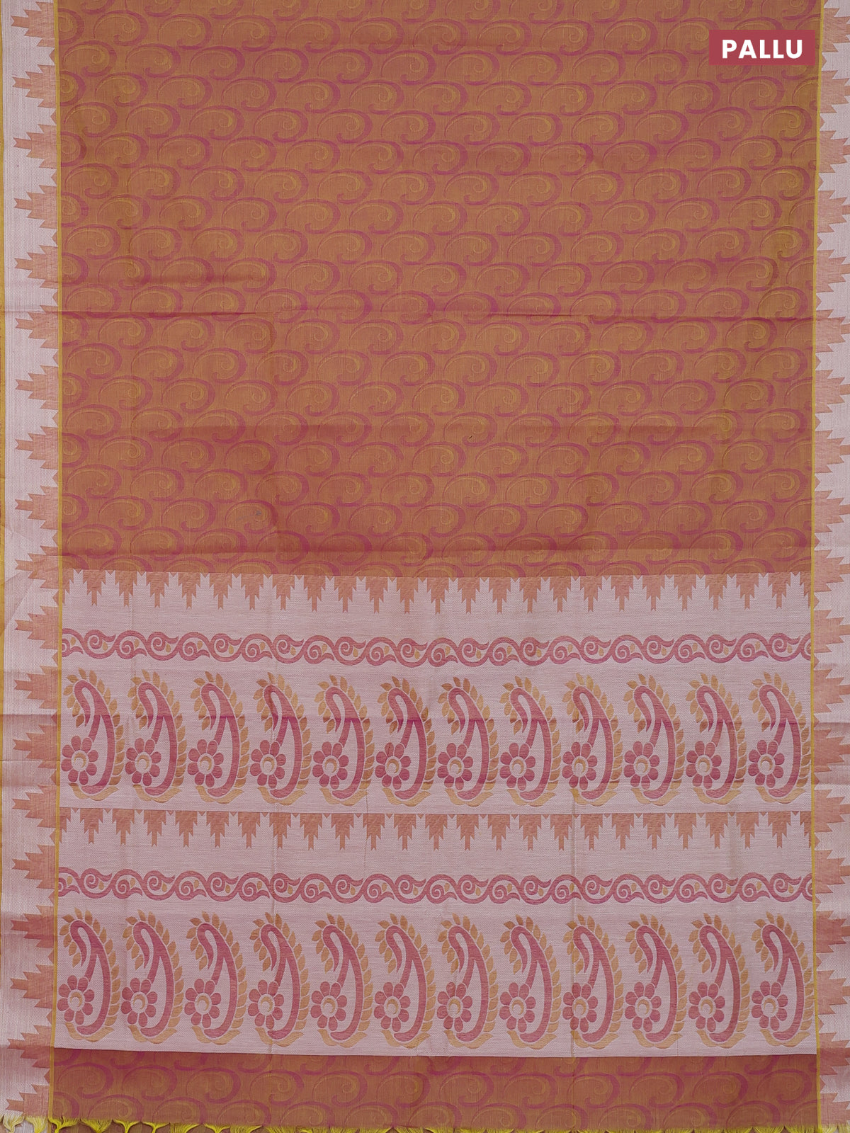 Coimbatore cotton saree dual shade of yellowish purple with allover self emboss and thread woven border