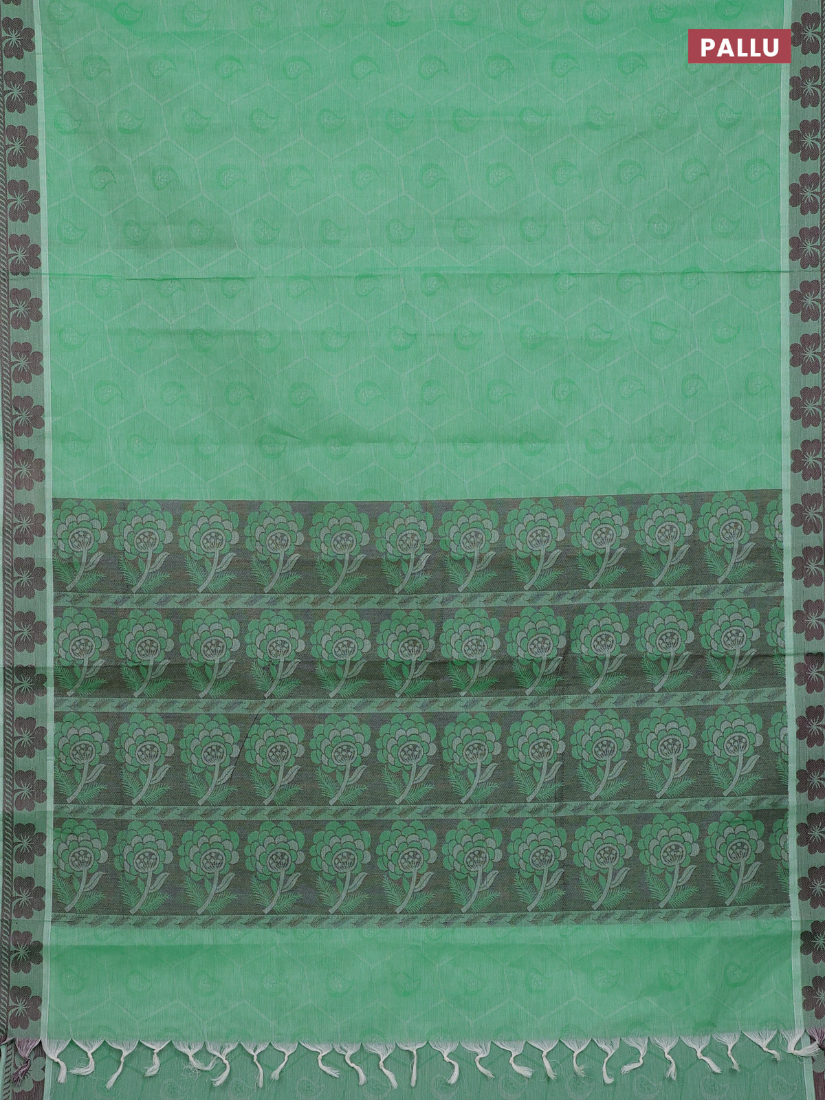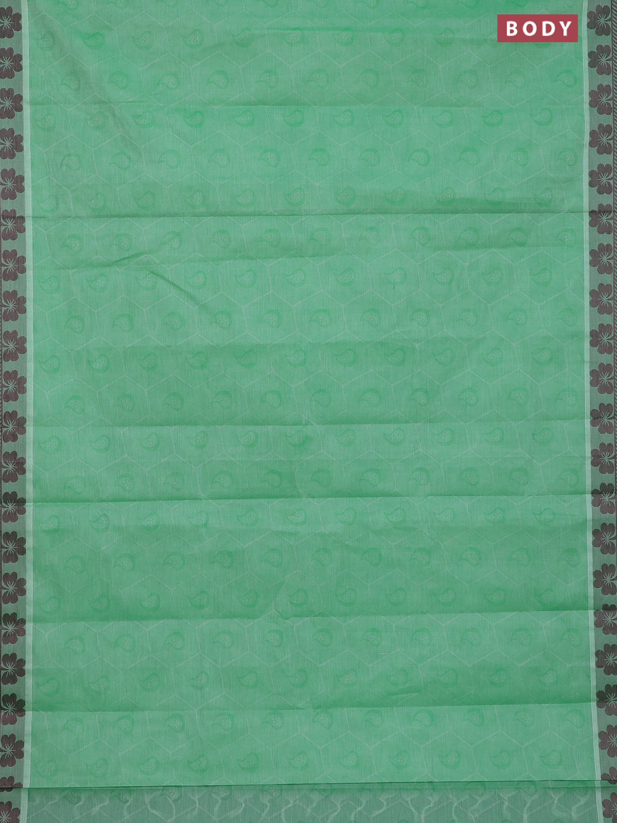 Coimbatore cotton saree green and deep maroon with allover self emboss and thread woven border