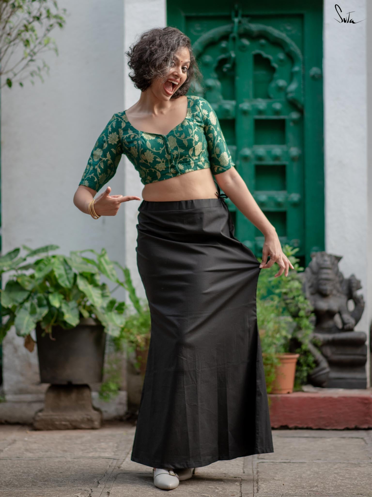 A beautiful trio of 3 cotton-lycra underskirts in Blush, Off-White, and Onyx. The soft pink and neutral shades are paired with the deep, dark Onyx for a modern, elegant look. This set is perfect for anyone looking to add subtle but striking colors to their outfit.