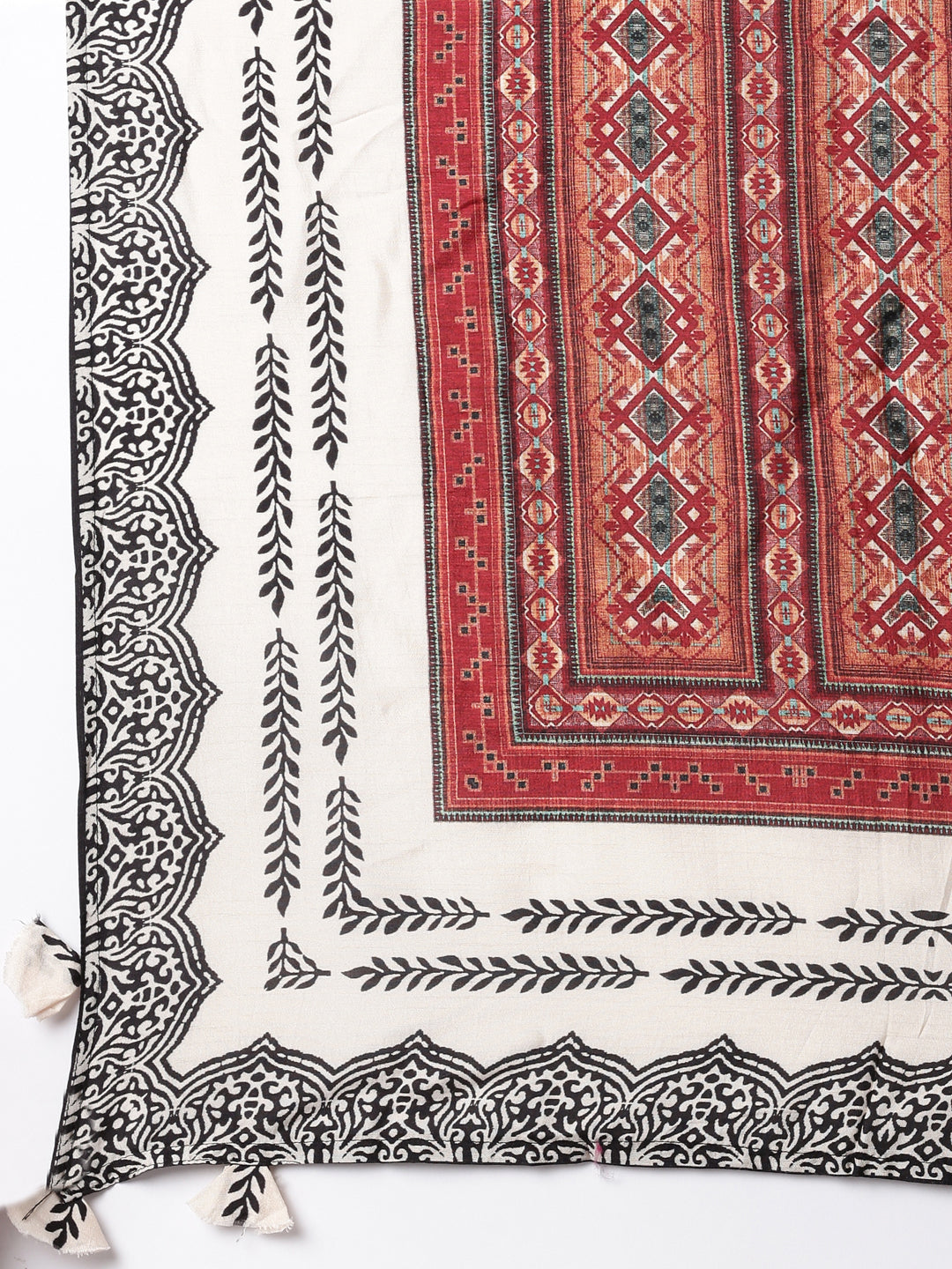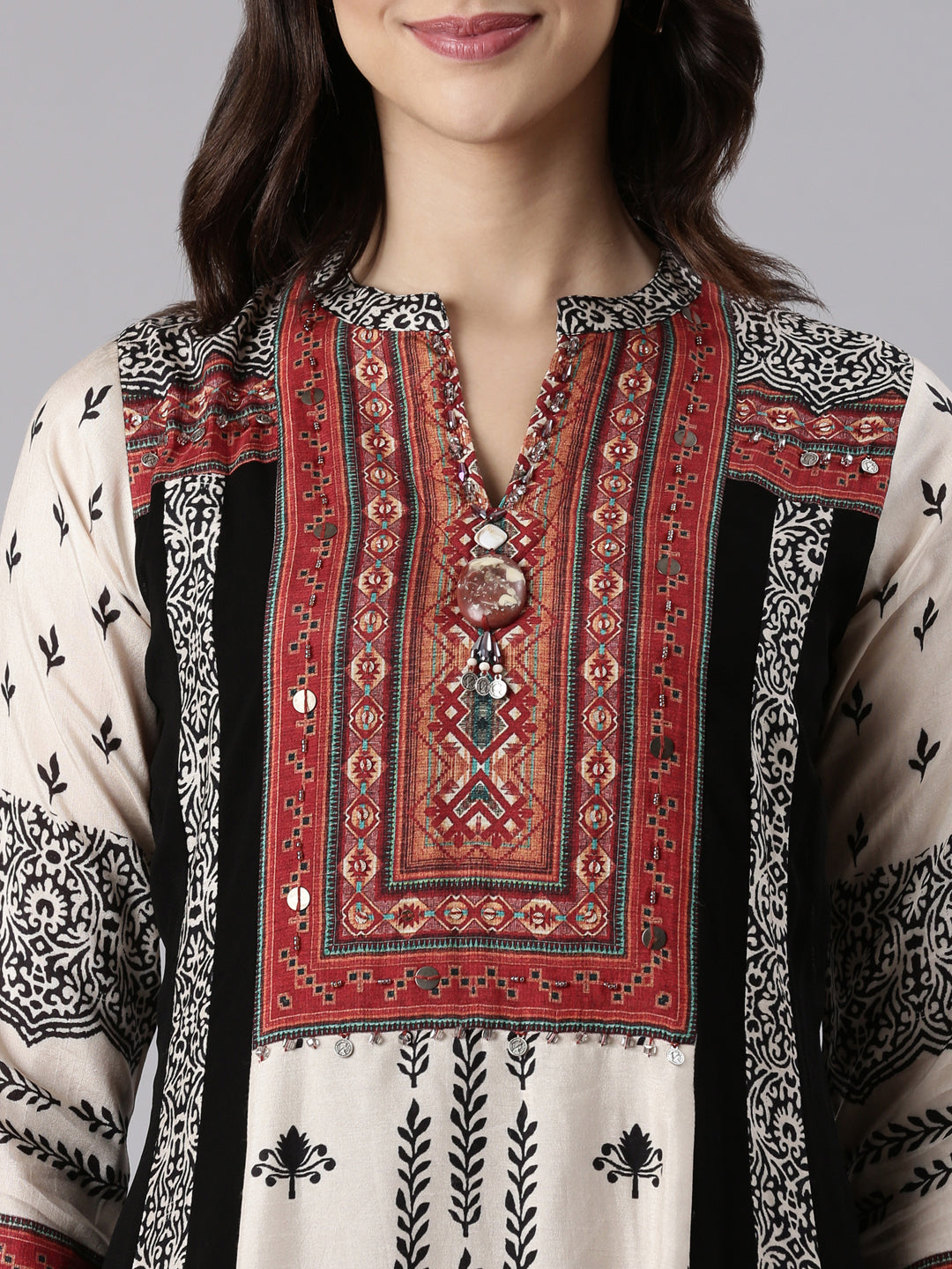 Elevate your wardrobe with this Cream Muslin Printed Three Piece Set featuring an elegant palazzo. Crafted from breathable muslin fabric, it offers comfort without compromising style. The subtle print and refined palette create a sophisticated look perfect for both casual and semi-formal occasions. The matching palazzo complements the set, enhancing the overall grace and ease of wear.