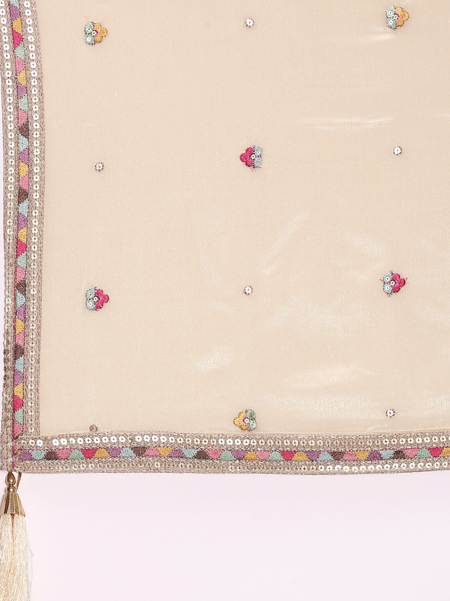 Cream Tissue Floral Embroidered Anarkali Set