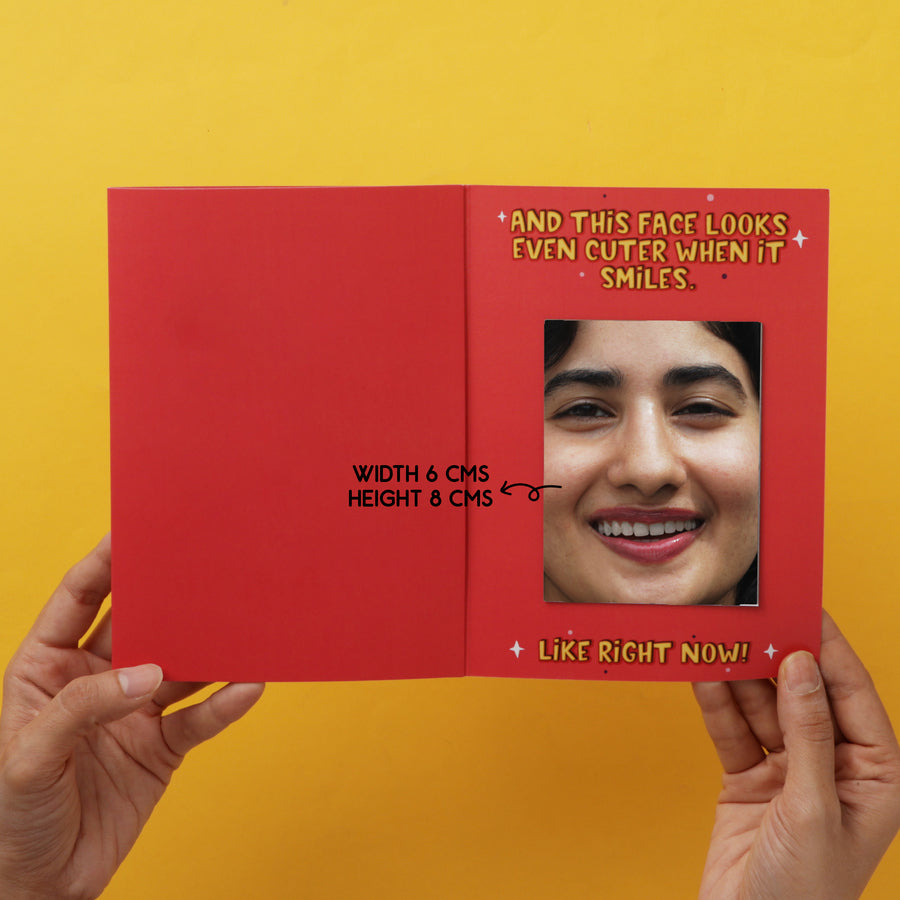 Inside Text: "And this face looks even cuter when it smiles. Like right now!"