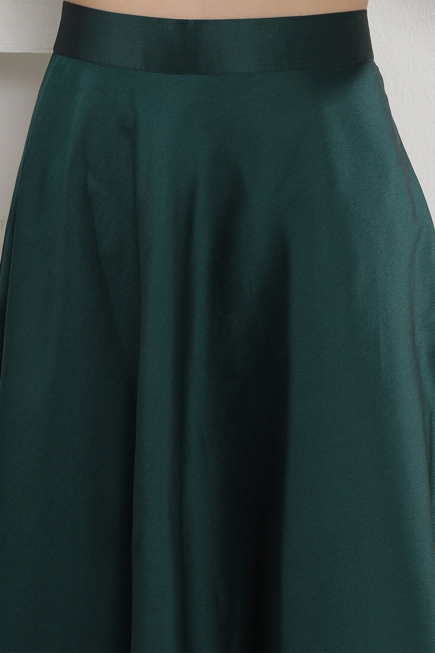 Dark Green Tafta Silk Lehnga Top And Dupatta Set