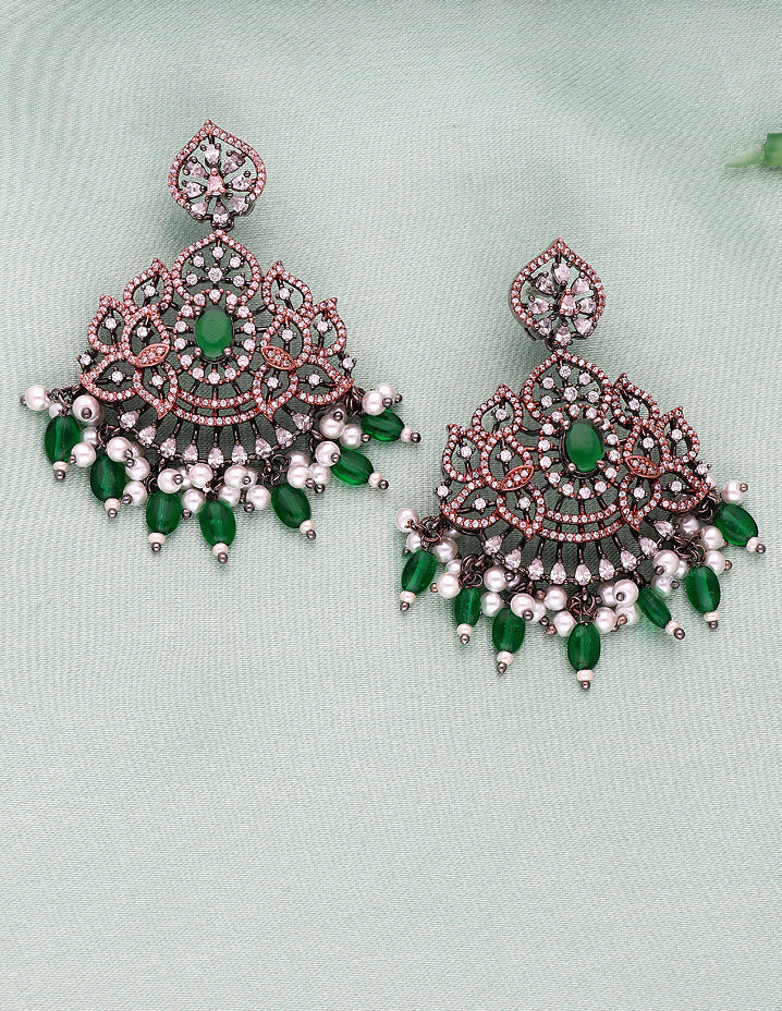 This beautiful BlackRose polish CZ necklace set right here is dripping in elegance and style. The eccentric design of the necklace, studded in American diamond stones, looks like a treat to the eyes.