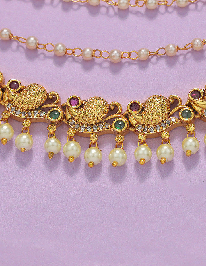 Experience the vibrant Zircoina Stones in this beautiful Chempaswara. Perfect for traditional Indian sarees, it adds elegance to any occasion - from home pujas to grand weddings.