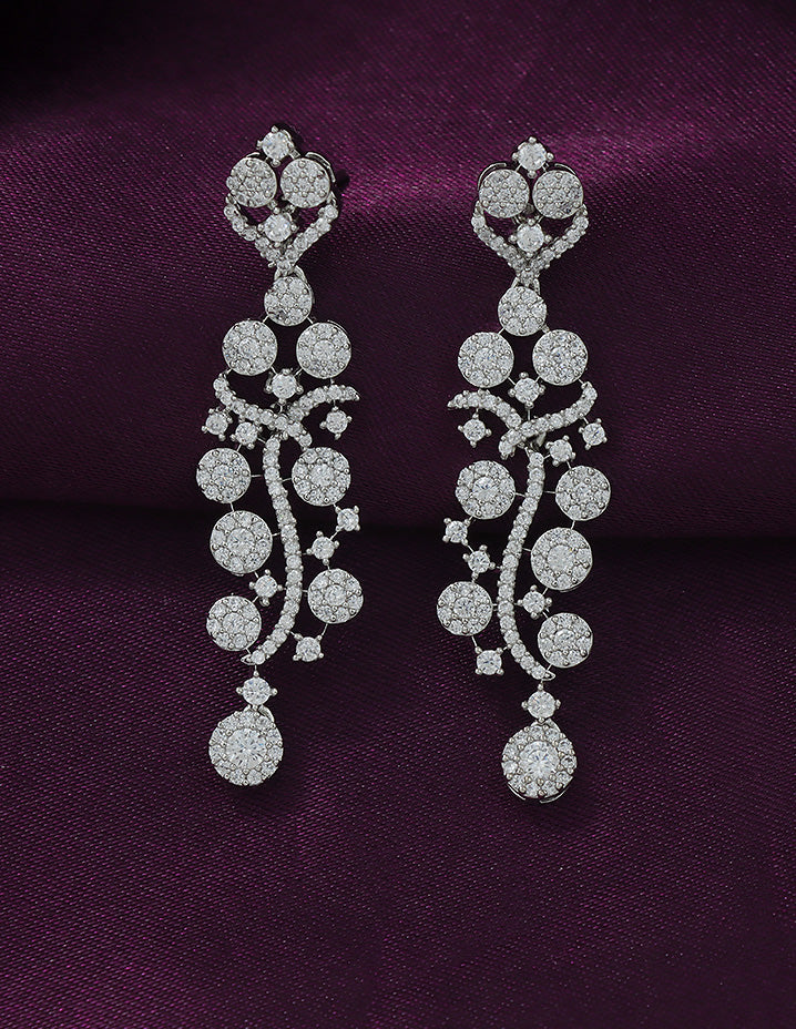 A radiant Rhodium-toned necklace and earring set adorned with sparkling Bud and floral motifs, perfectly blending elegance and charm for your special occasions.
