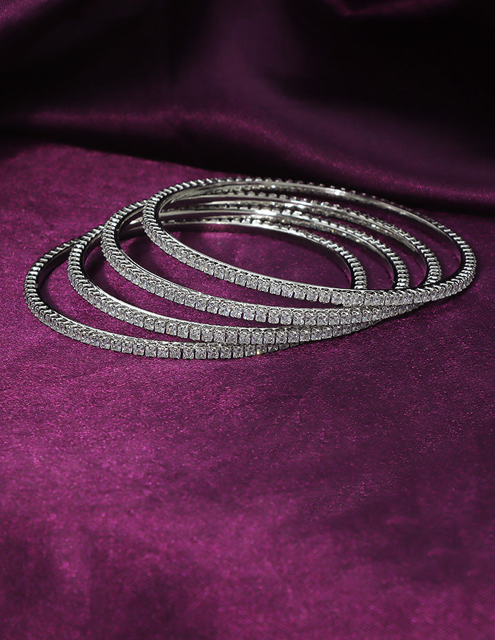 Designer Zirconia Rhodium Polish set of 4 Bangles