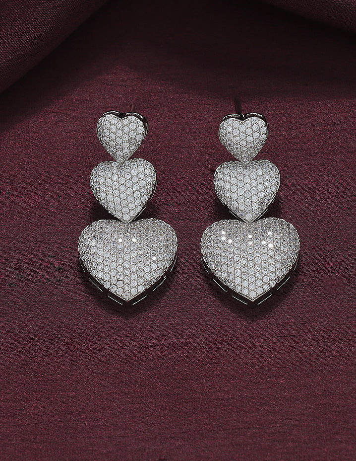 Add a touch of glamour to your look with these dazzling triple-heart earrings, beautifully encrusted with shimmering stones in a golden finish — perfect for date nights or festive occasions!